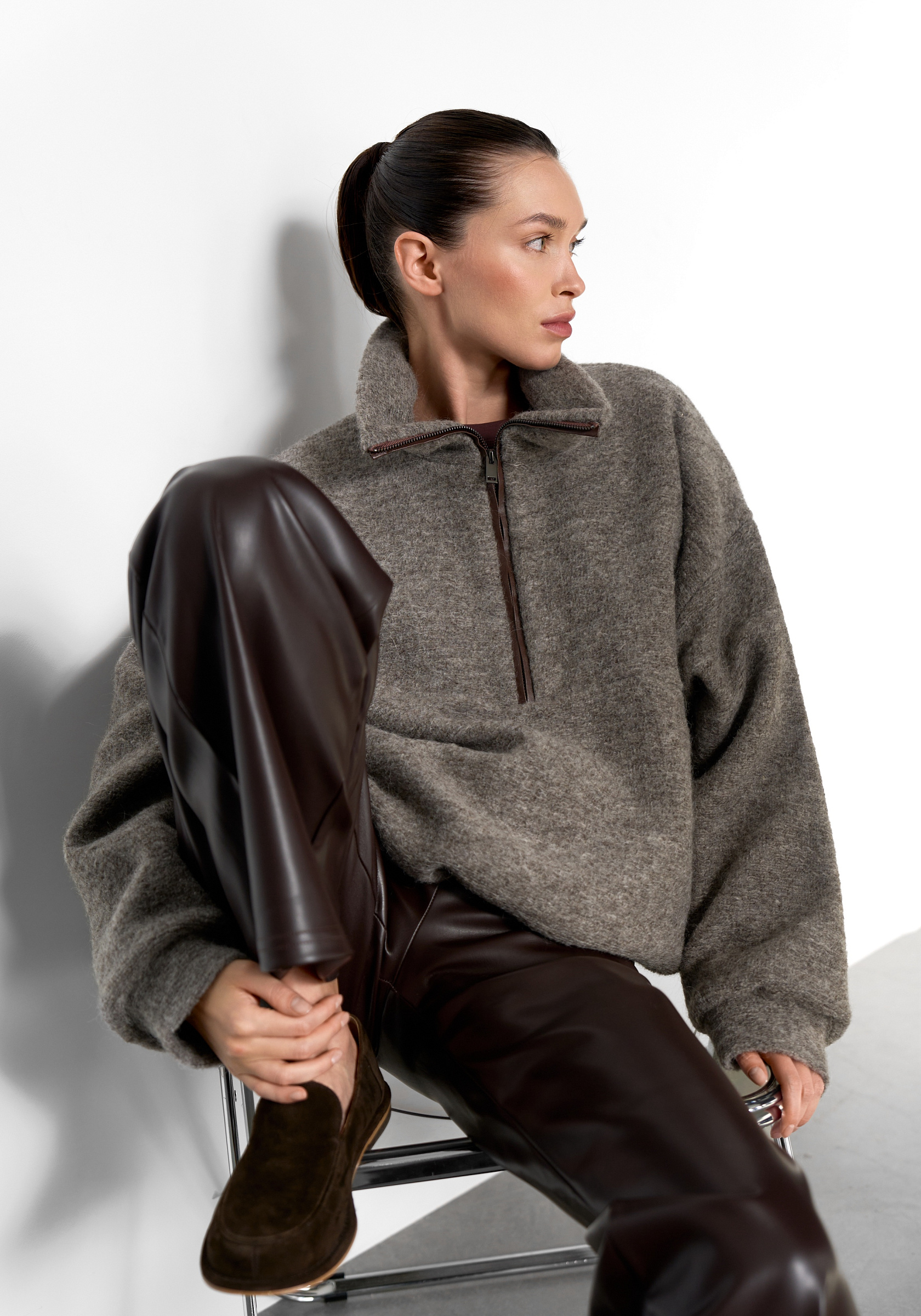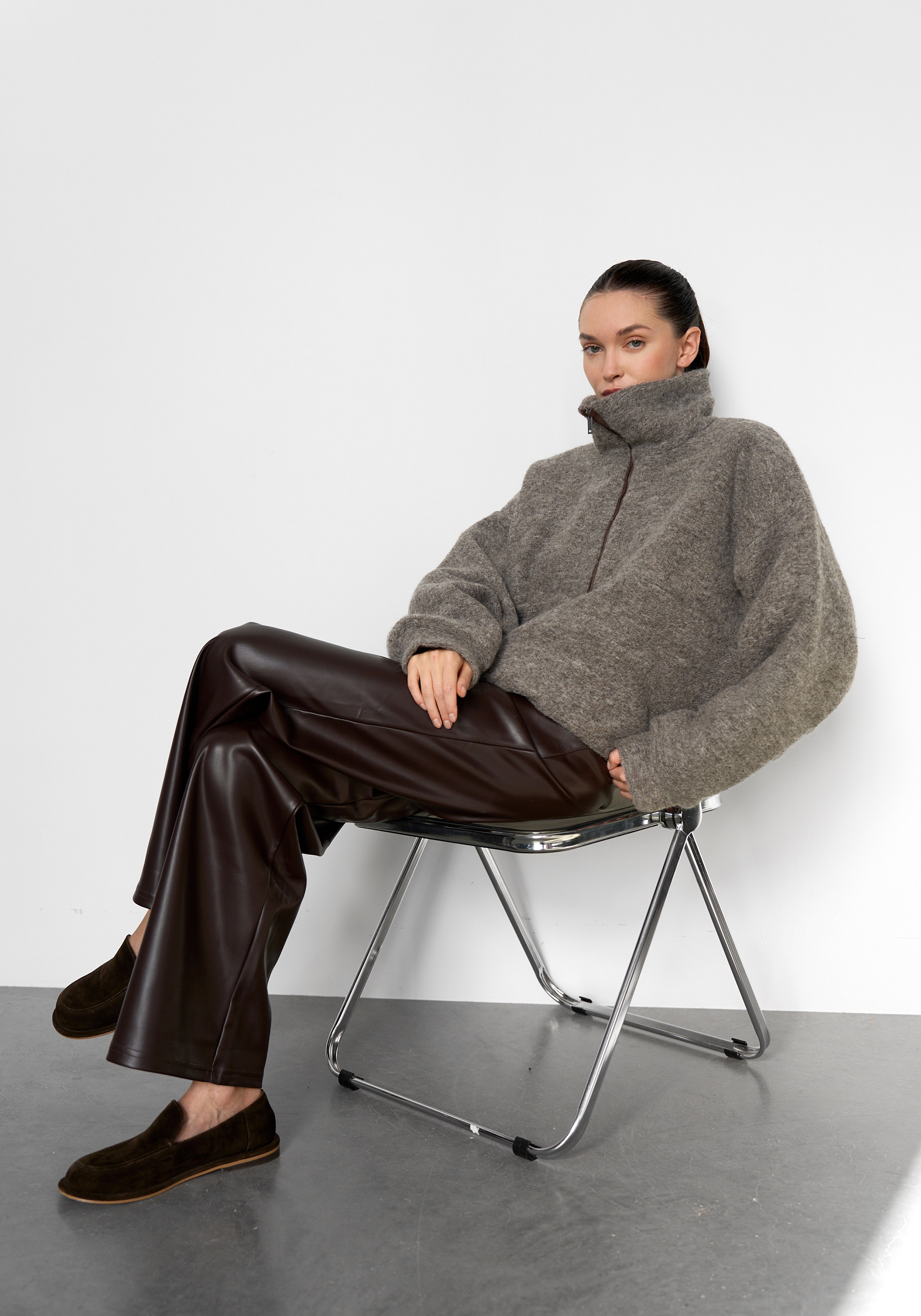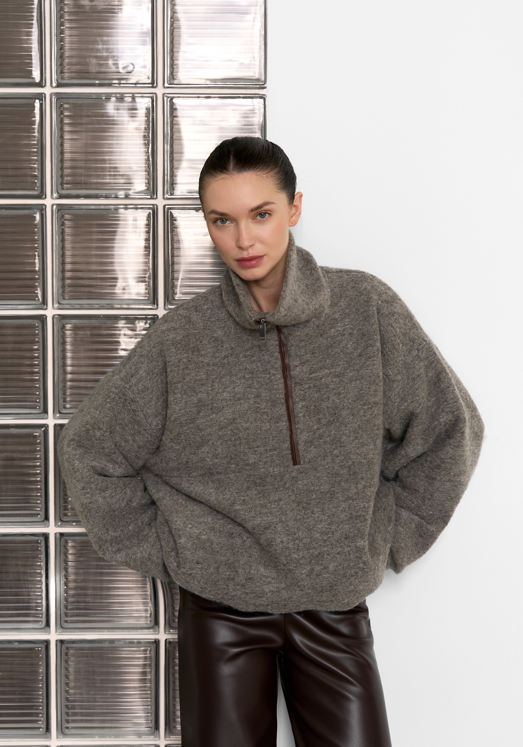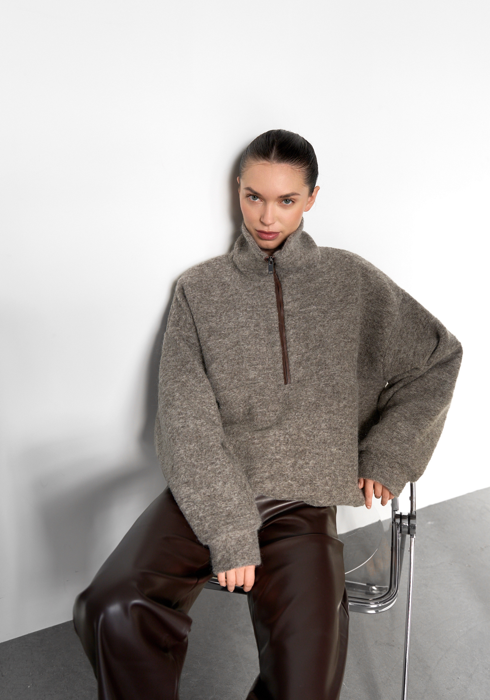 Шерстяной анорак — тёплый, лёгкий и невероятно уютный. Объёмный силуэт и лаконичный дизайн создают современный минималистичный образ. Высокий воротник на молнии добавляет функциональности и защищает от ветра, а мягкая фактура подчёркивает естественную благородность материала.Модель выполнена из 100% шерсти, а подкладка из вискозы обеспечивает комфорт и приятное ощущение к телу. Натуральные материалы делают анорак дышащим, износостойким и универсальным в сочетаниях — от повседневных образов до расслабленного smart-casual.