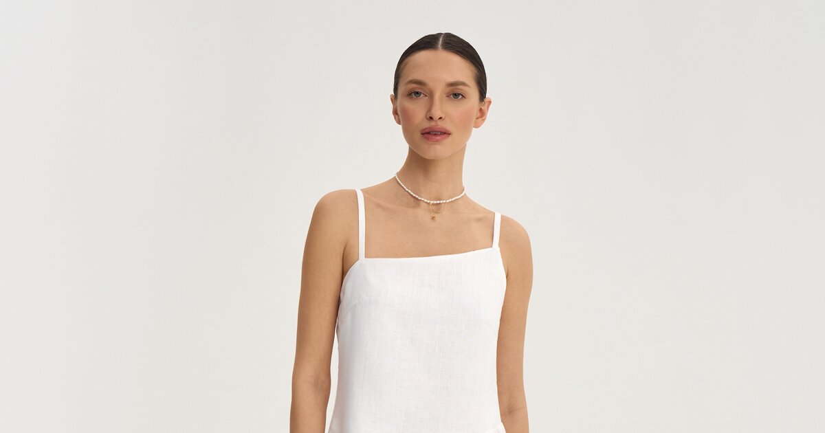 Квадратный вырез и тонкие регулируемые бретели формируют чистый минималистичный силуэт. По спинке — эластичная вставка для комфортной посадки.