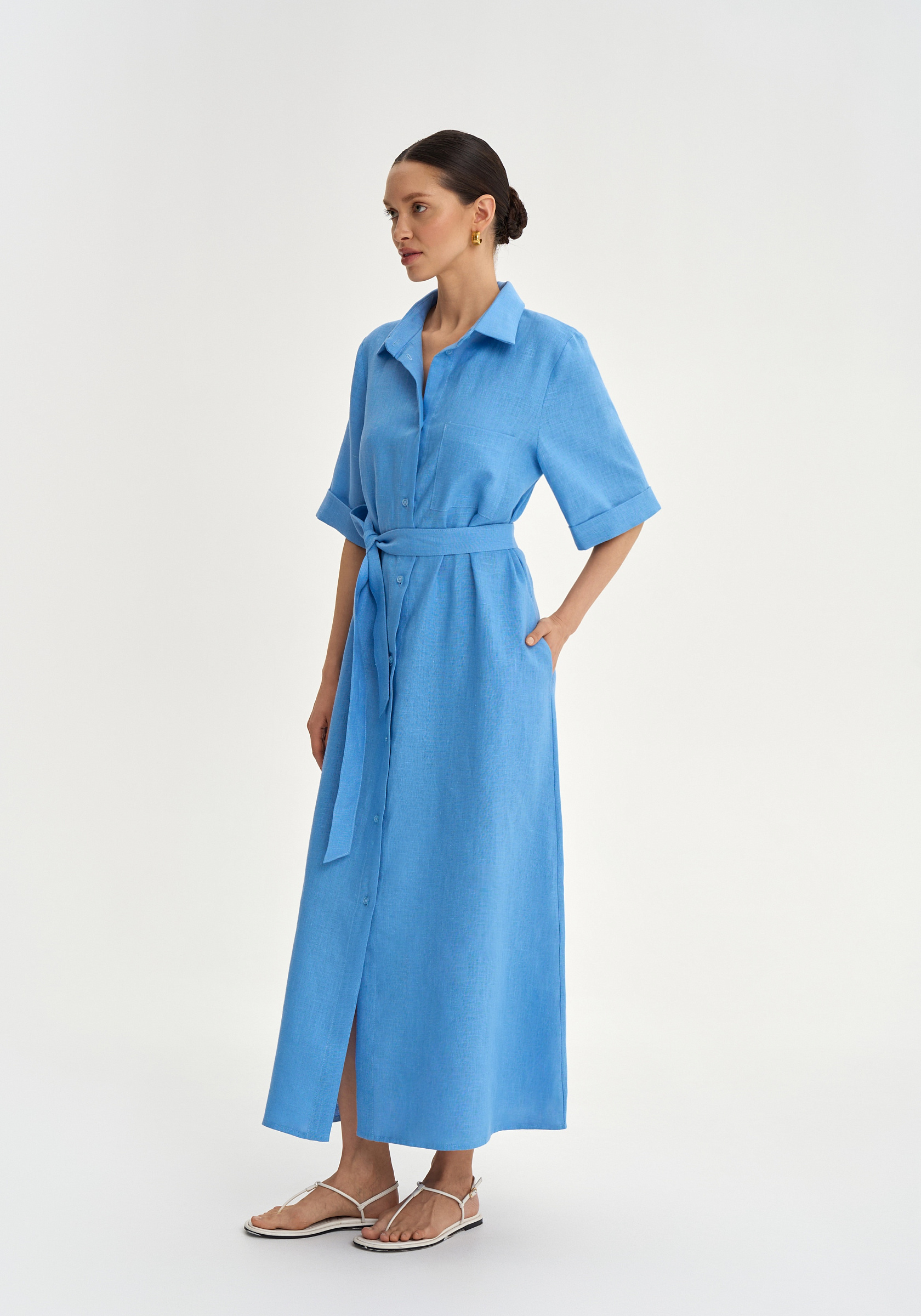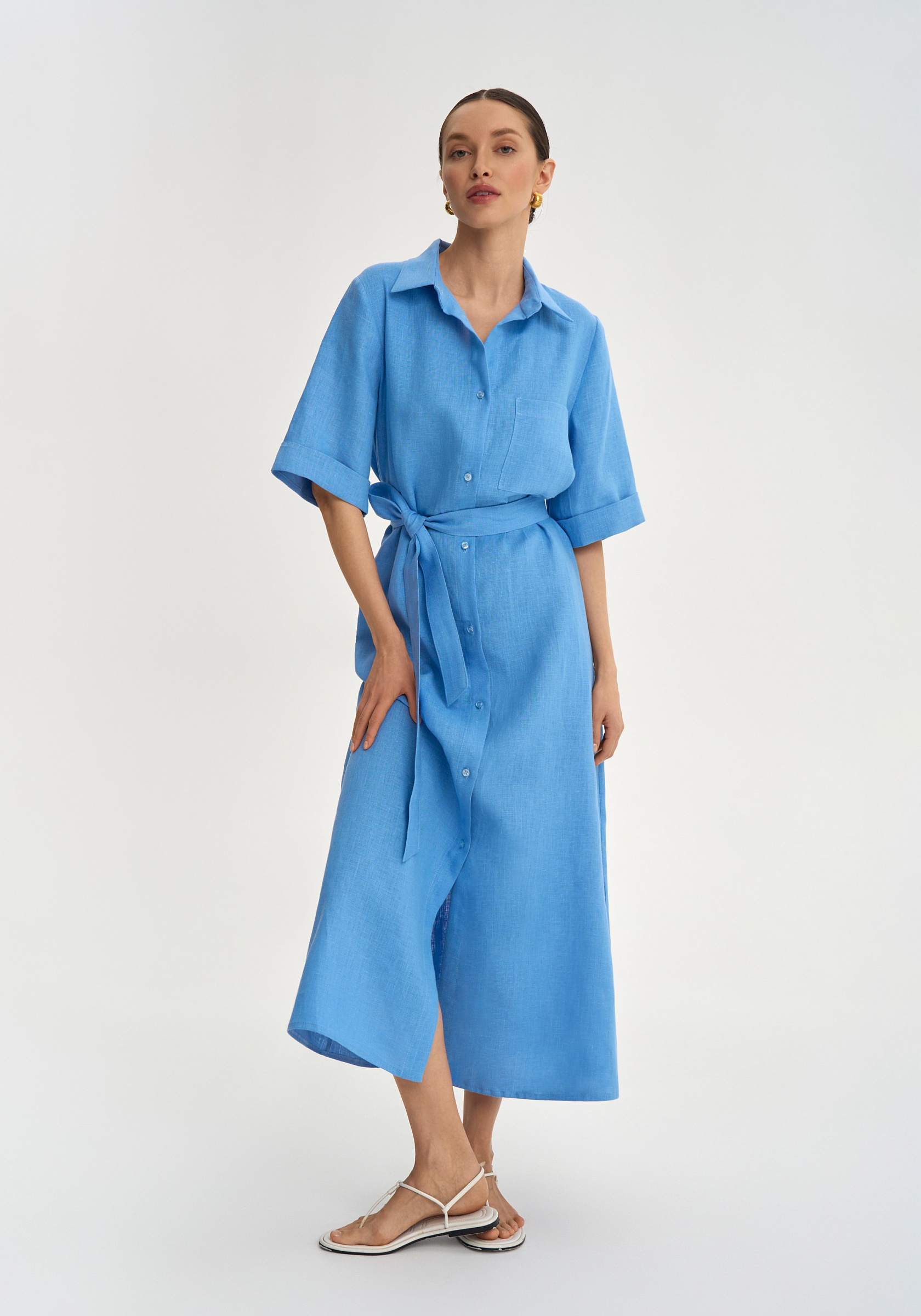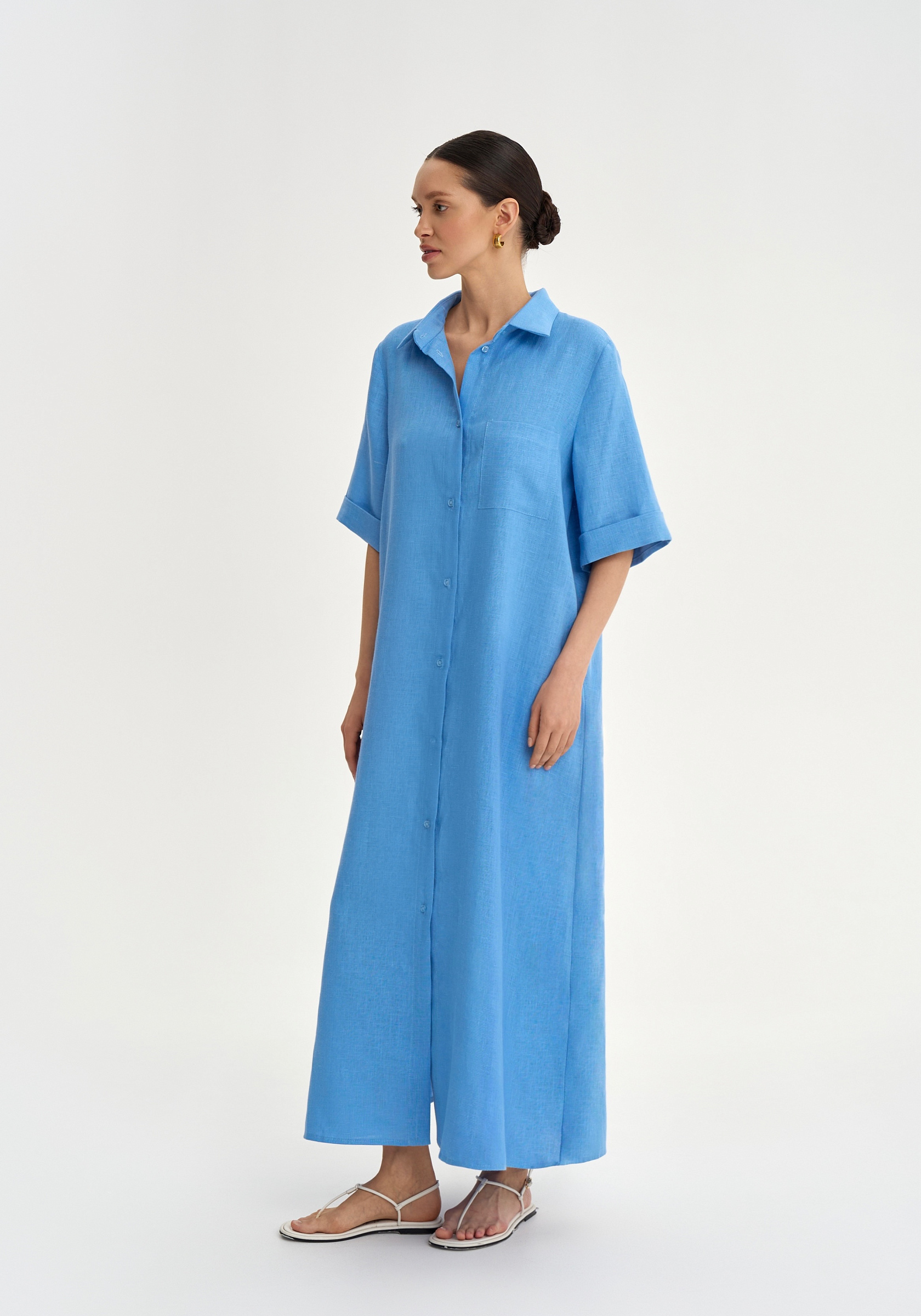Платье-рубашка из 100% льна.