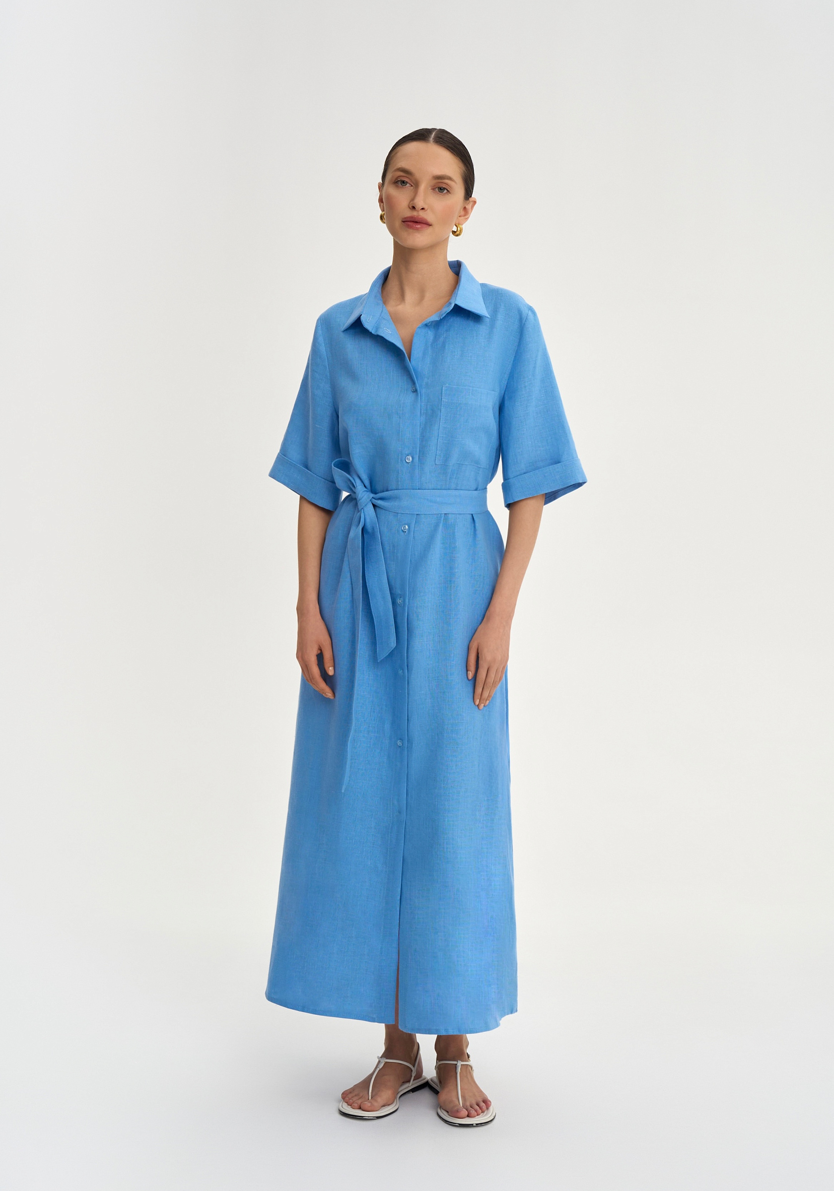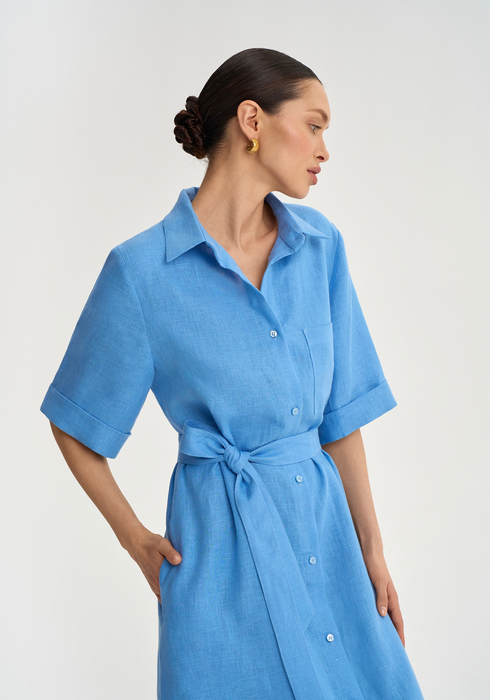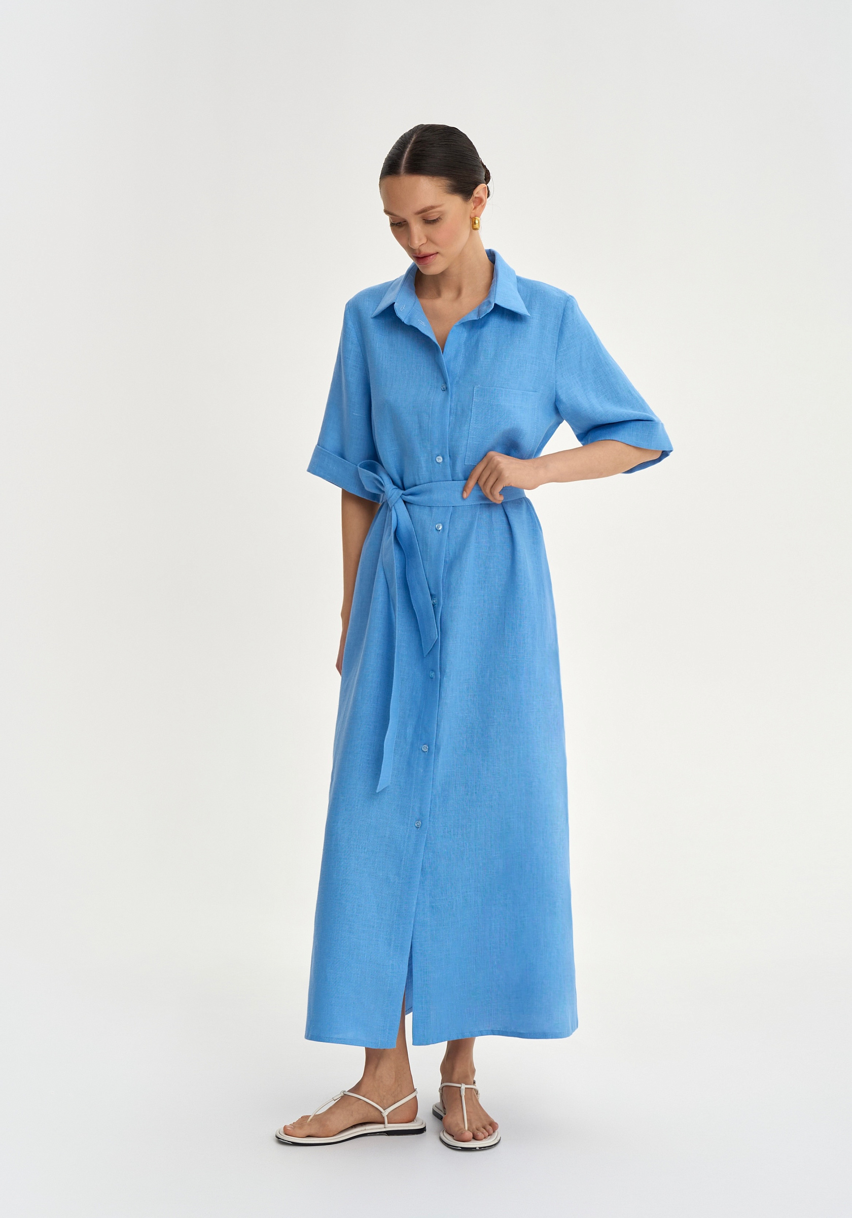 Платье-рубашка из 100% льна.