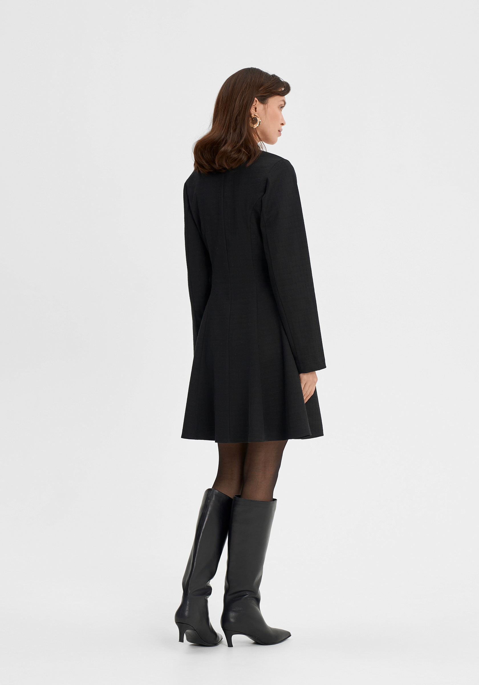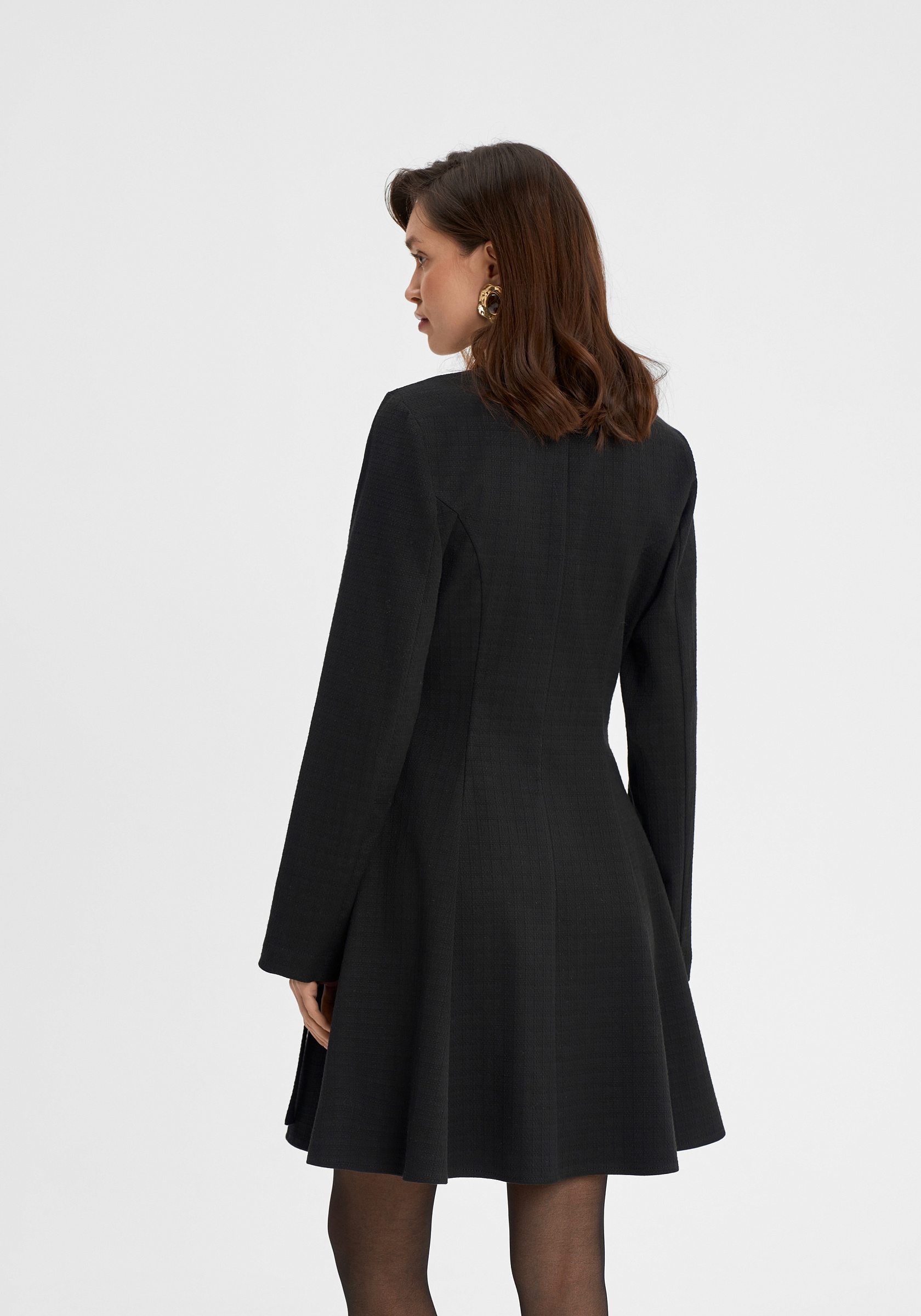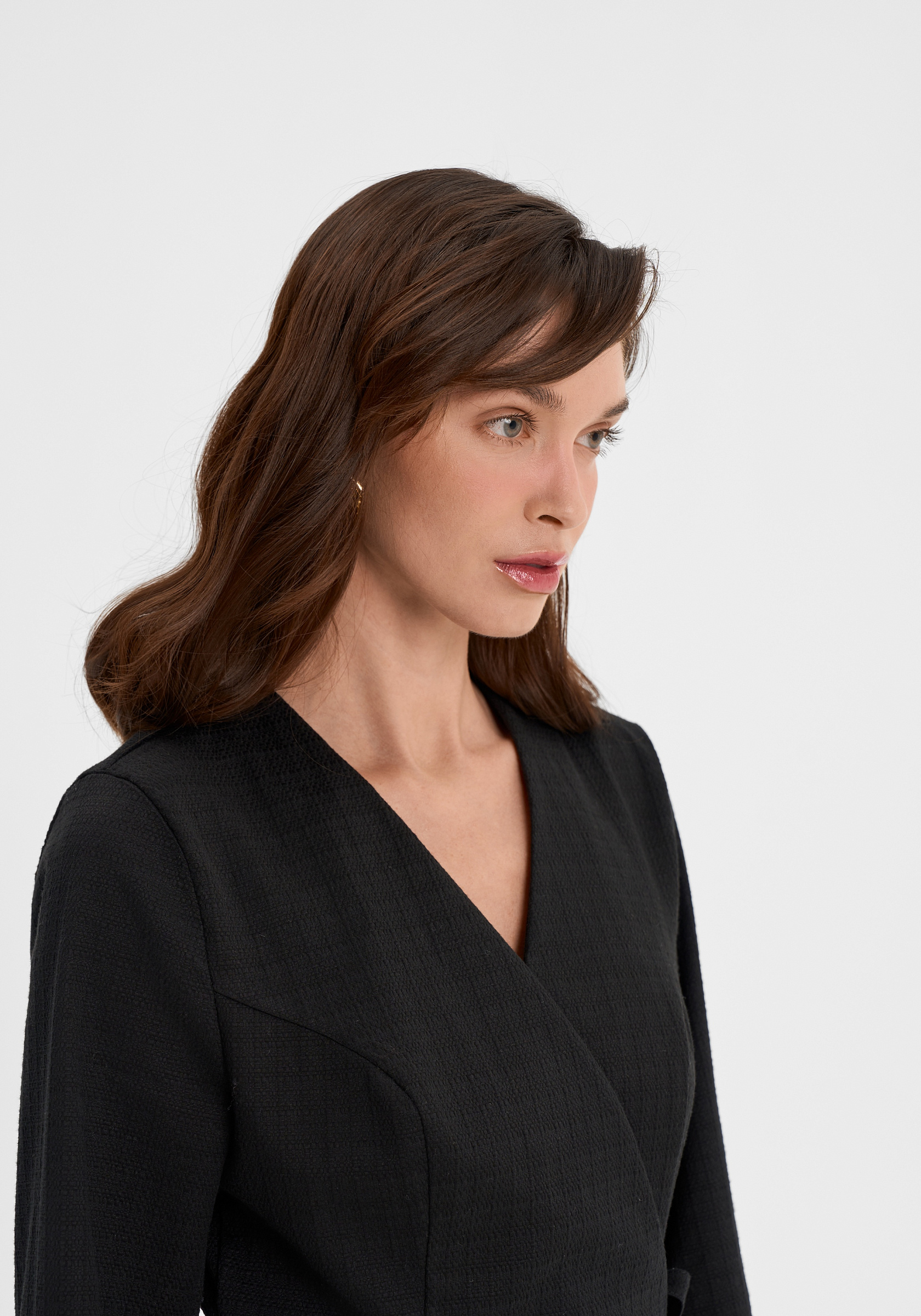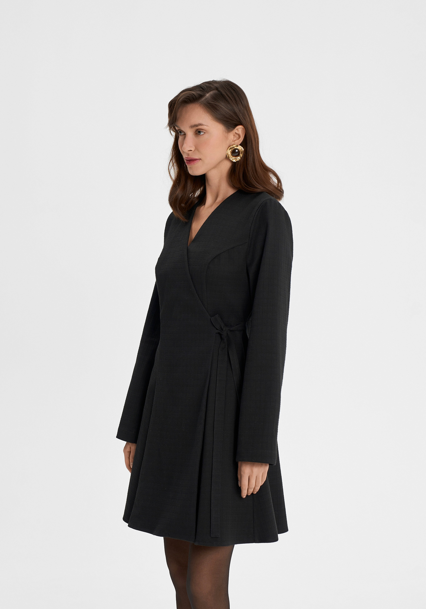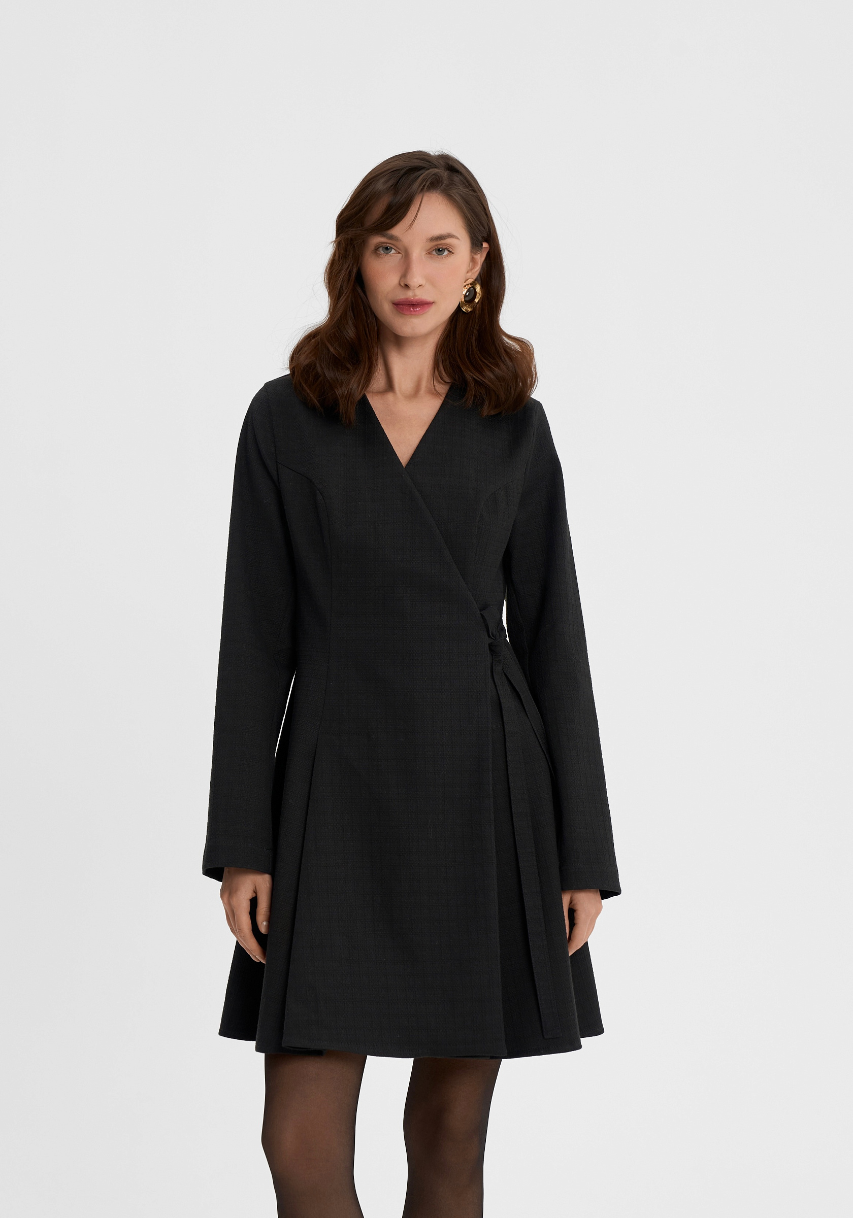 Платье на запах из 100% твидового хлопка — сдержанное и женственное. Материал с выраженной фактурой приятно ощущается на коже и держит форму, создавая чистый силуэт без излишней строгости.V-образный запах подчёркивает линию шеи, а складка в рельефе добавляет мягкости движению. Прямой втачной рукав сохраняет лаконичность кроя. Это платье легко адаптируется под настроение — от дневного образа до вечернего, оставаясь утончённым и естественным.