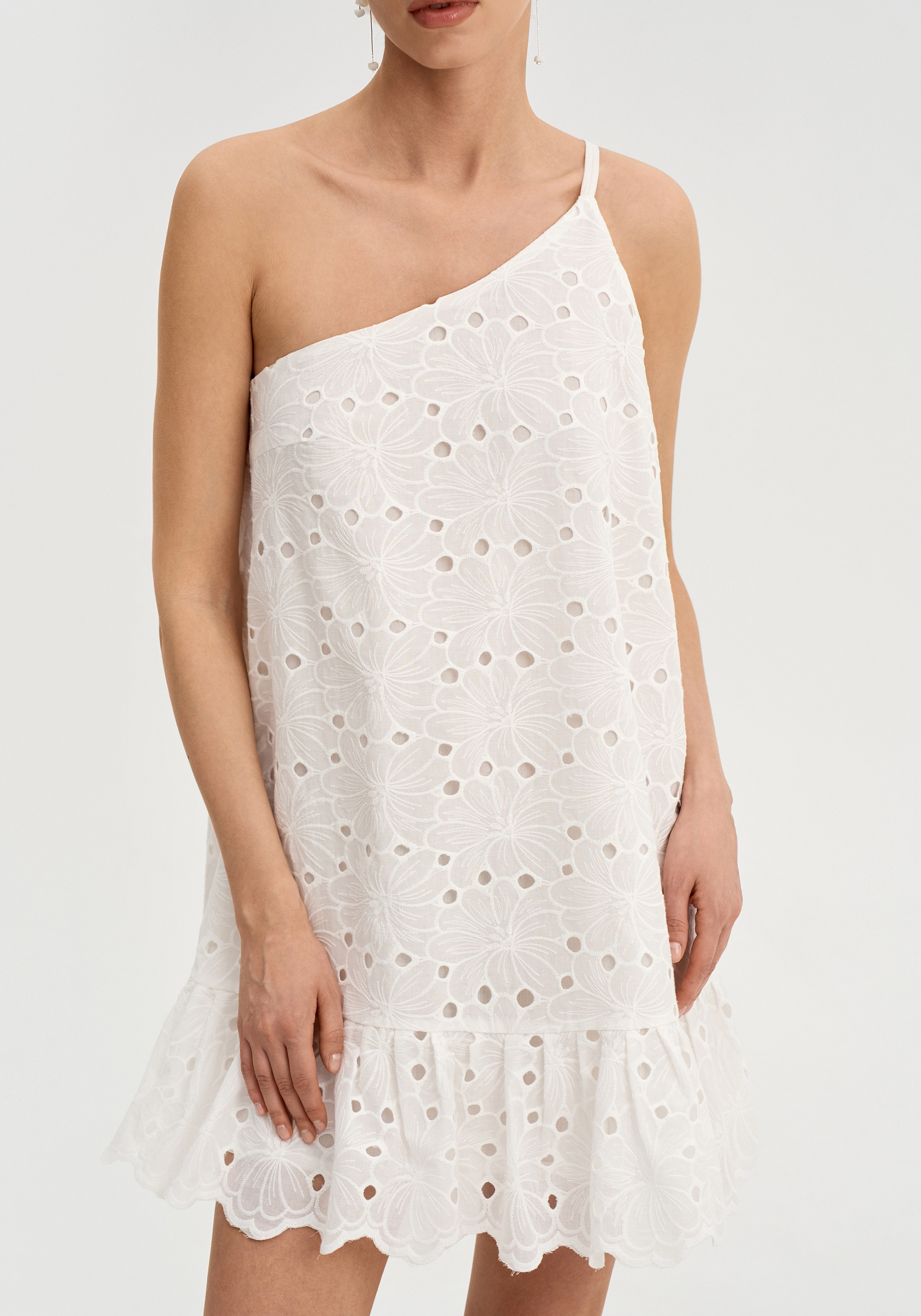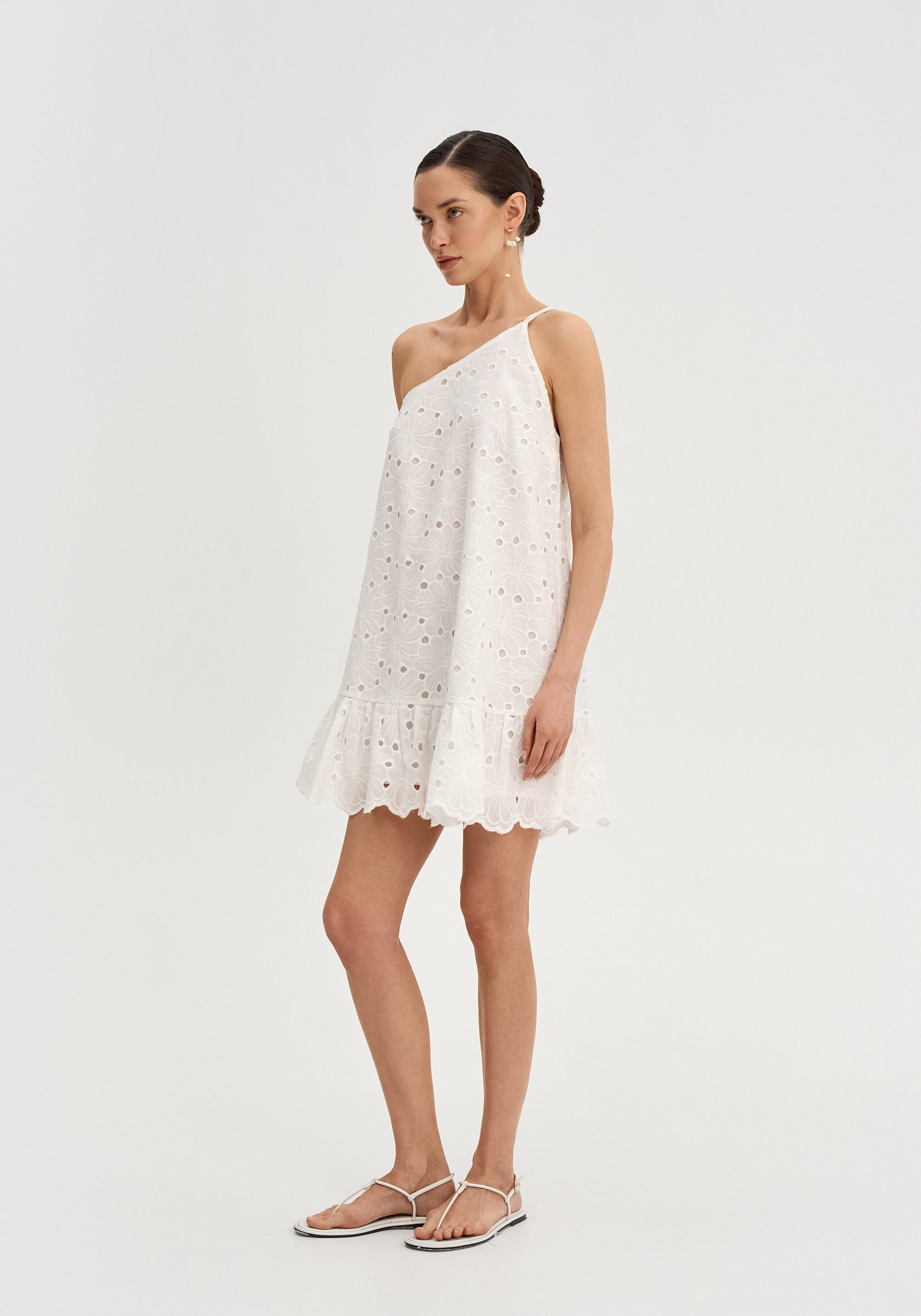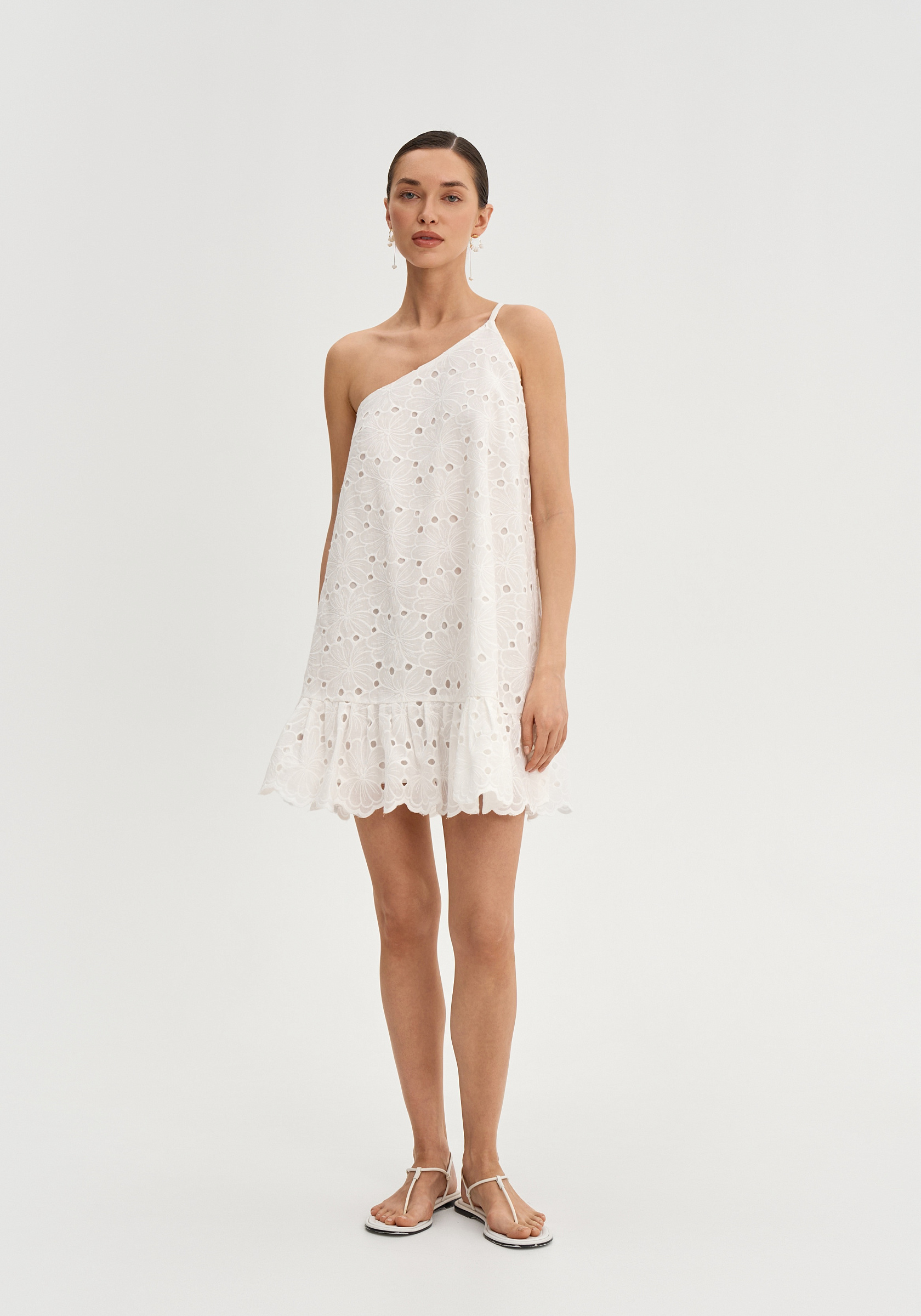 Свободный А-образный силуэт создаёт лёгкую и воздушную форму. Асимметричная линия плеч добавляет выразительный акцент.