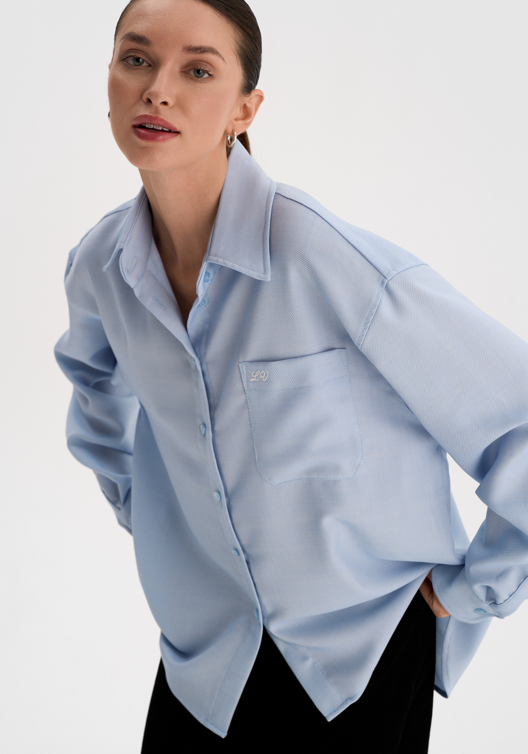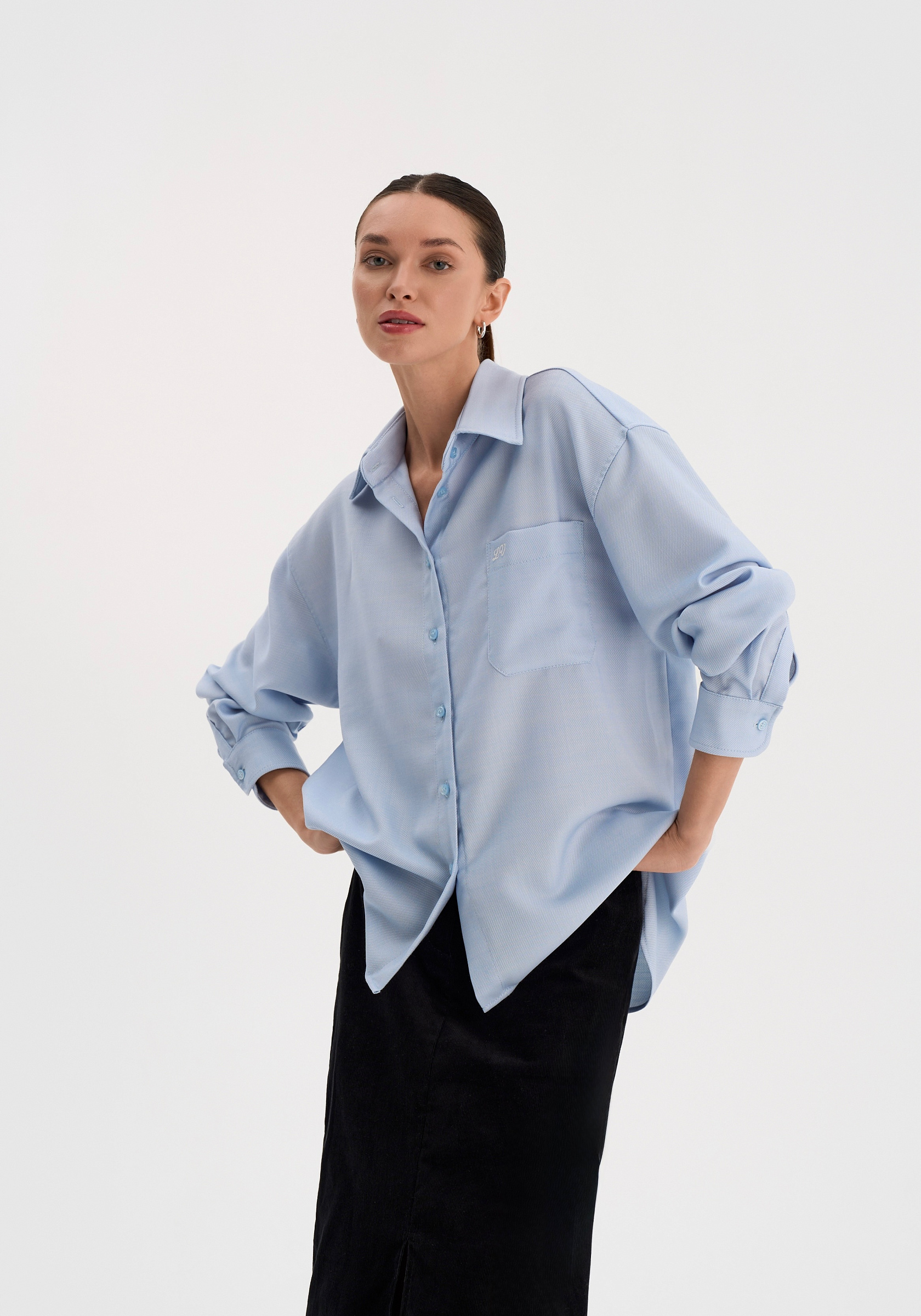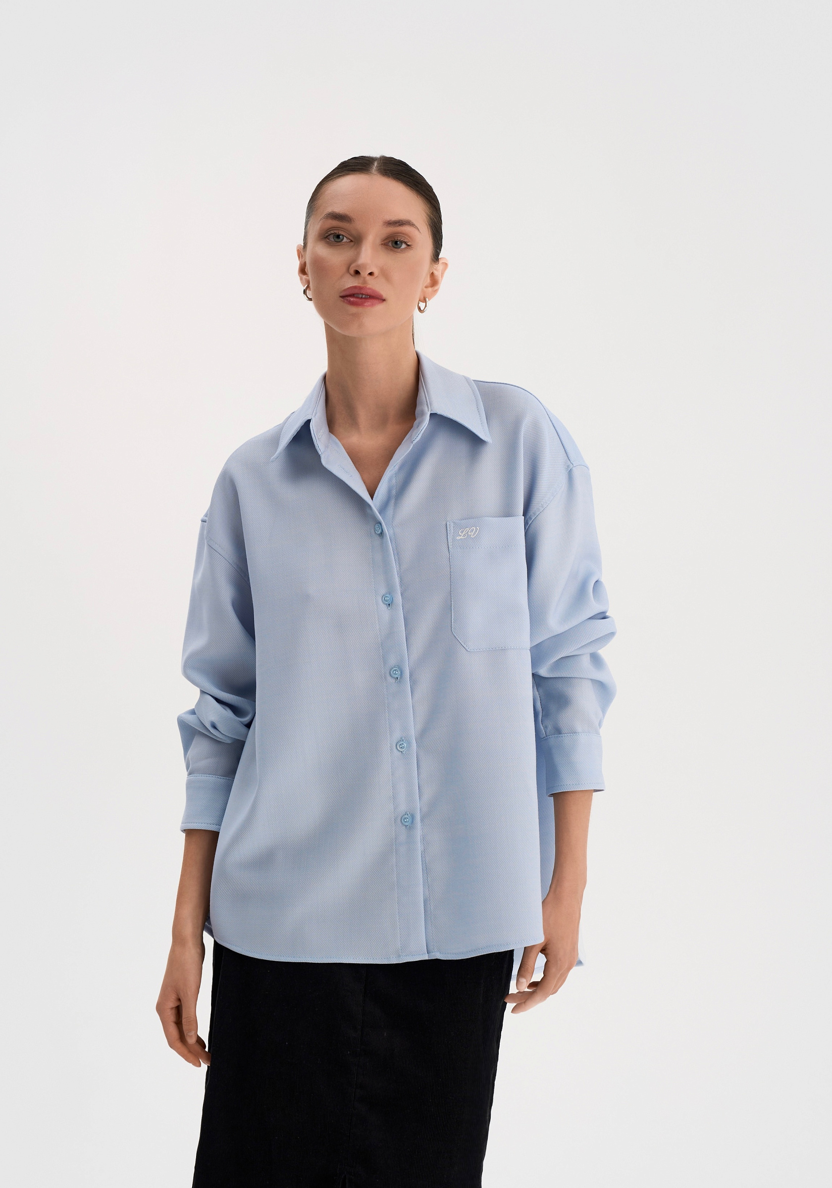 Рубашка из 100% шерсти в небесно-голубом оттенке. Мягкая фактура и свободный силуэт создают ощущение лёгкости, а аккуратная вышивка на кармане добавляет утончённый акцент в минималистичном образе.Параметры изделия