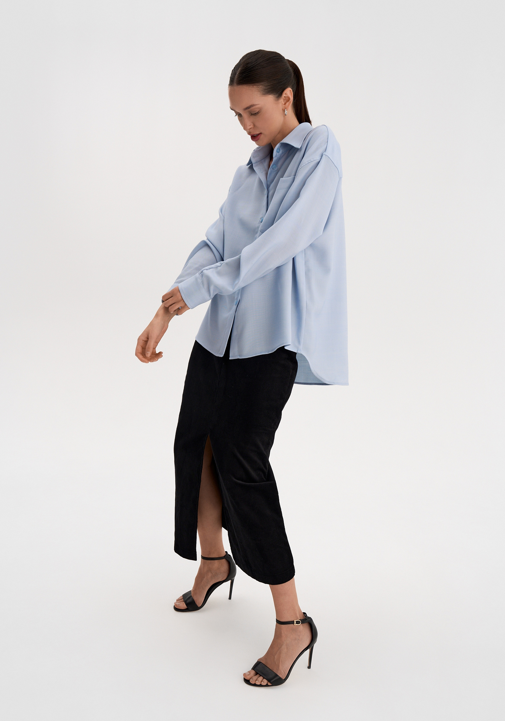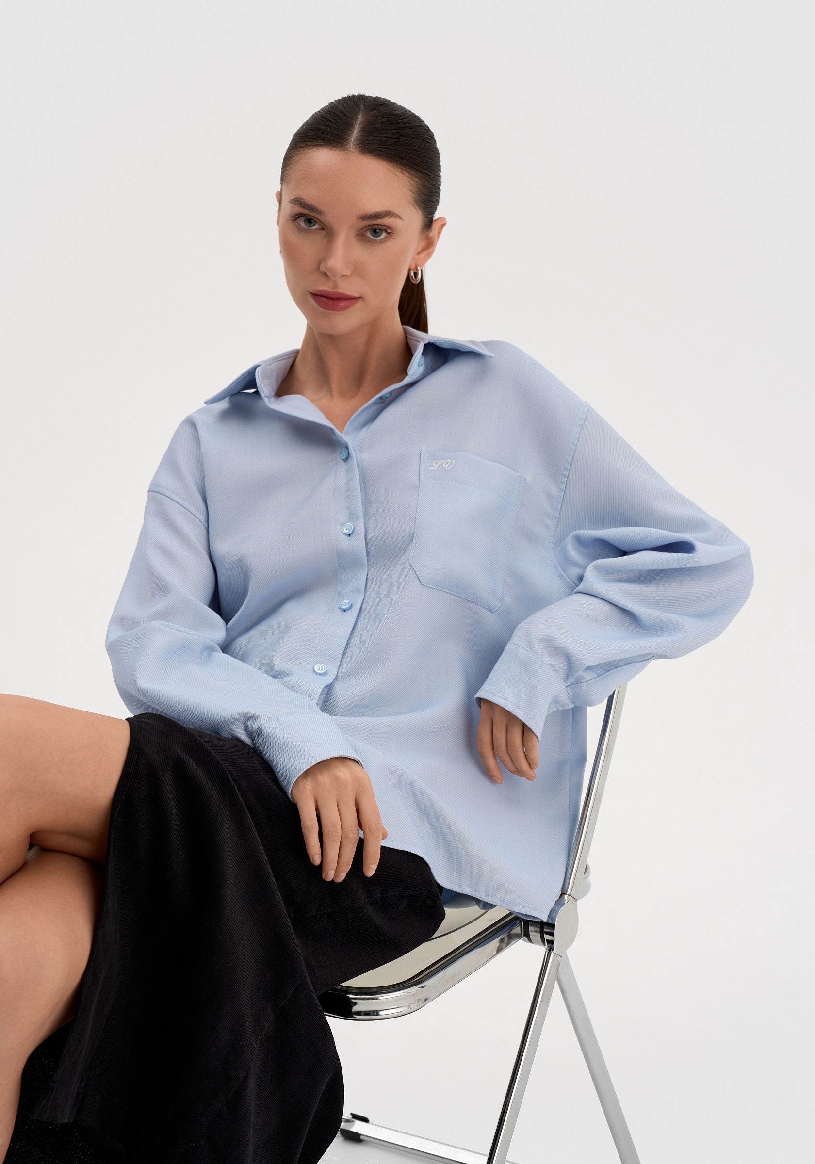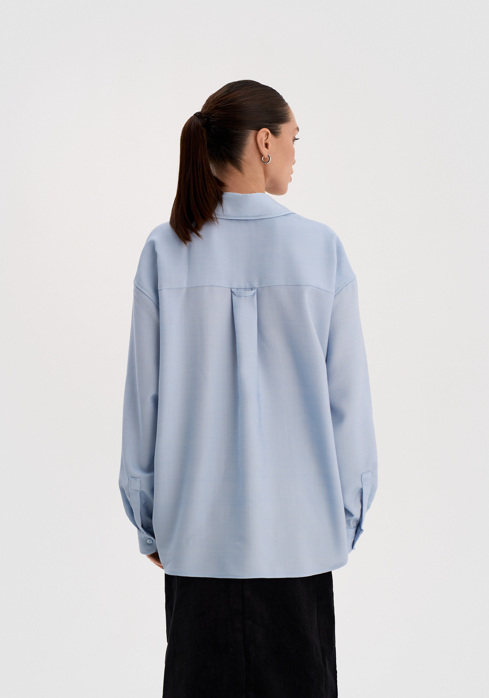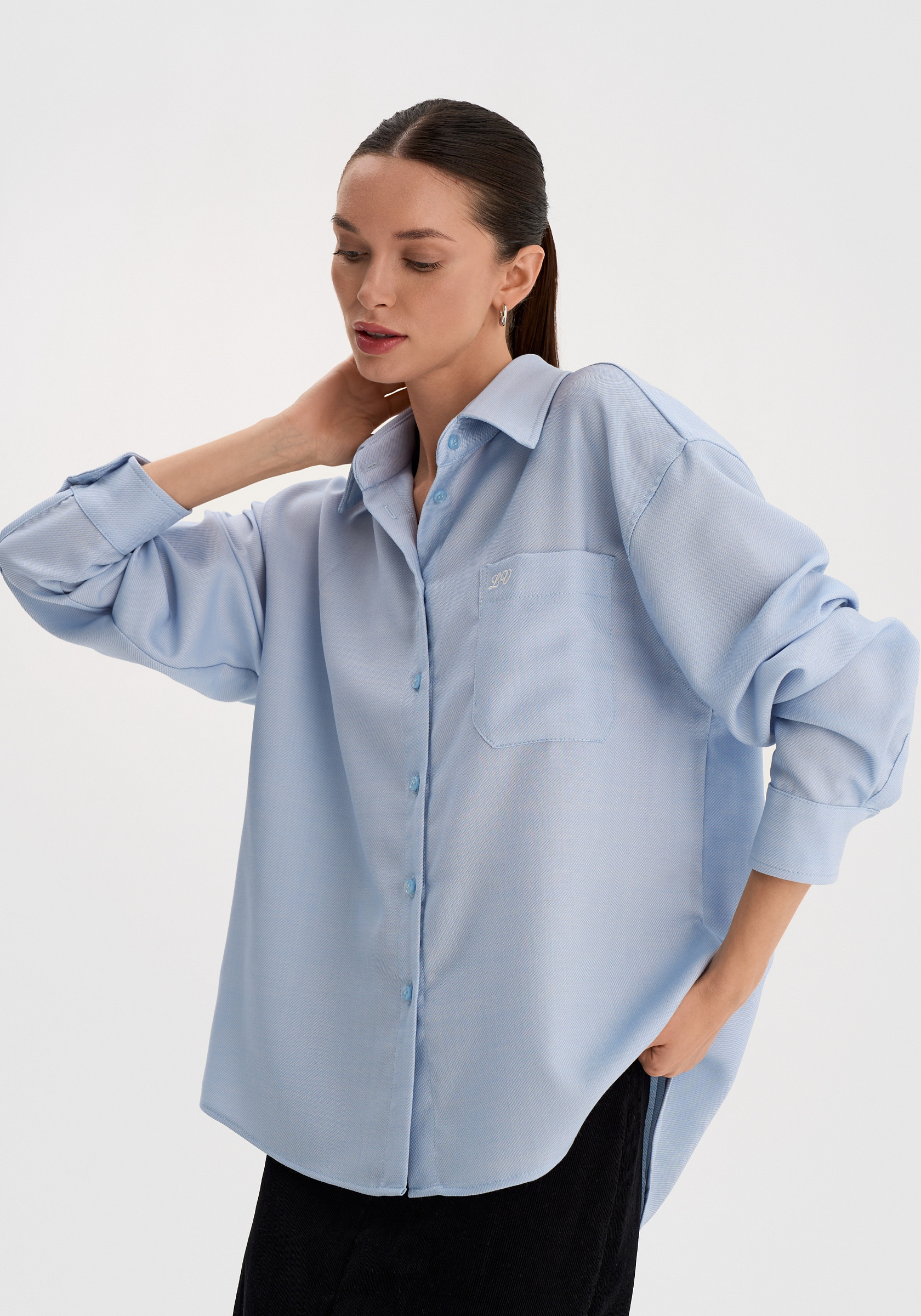 Рубашка из 100% шерсти в небесно-голубом оттенке. Мягкая фактура и свободный силуэт создают ощущение лёгкости, а аккуратная вышивка на кармане добавляет утончённый акцент в минималистичном образе.Параметры изделия