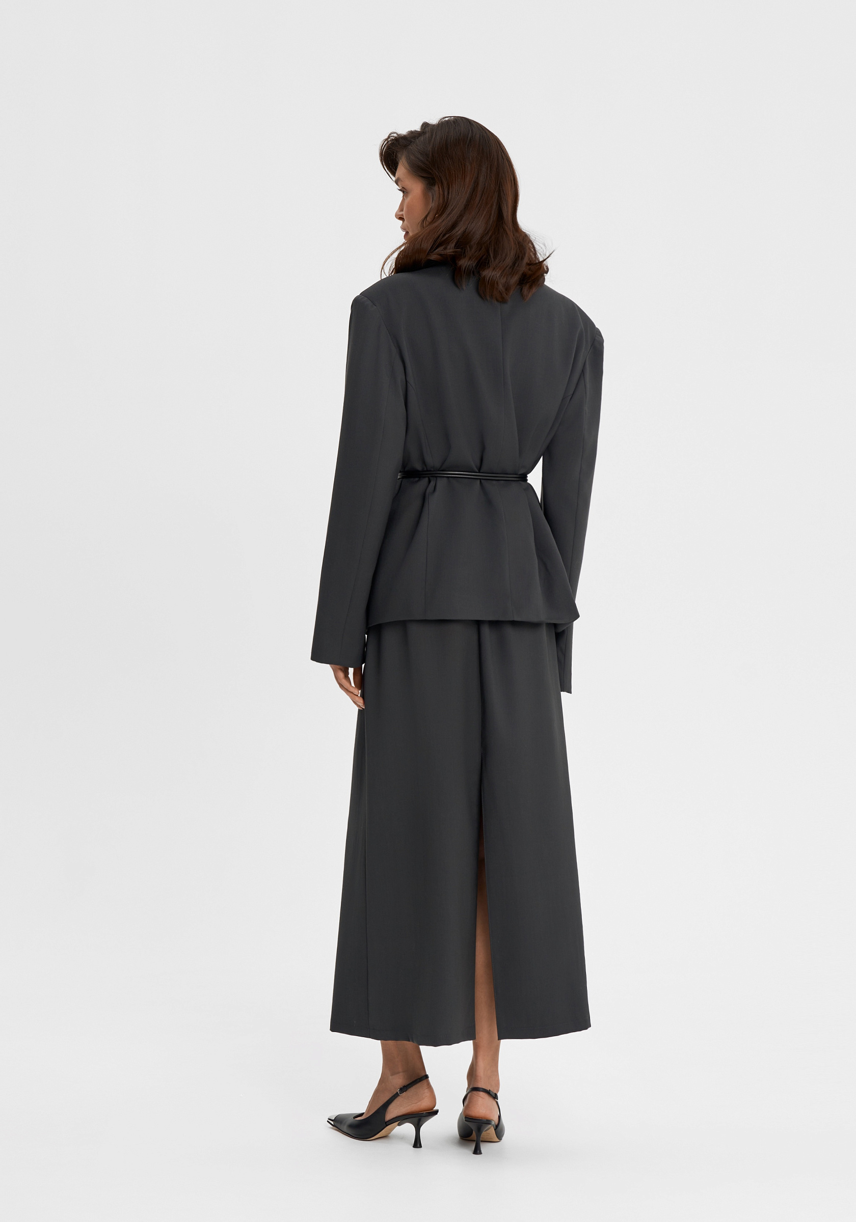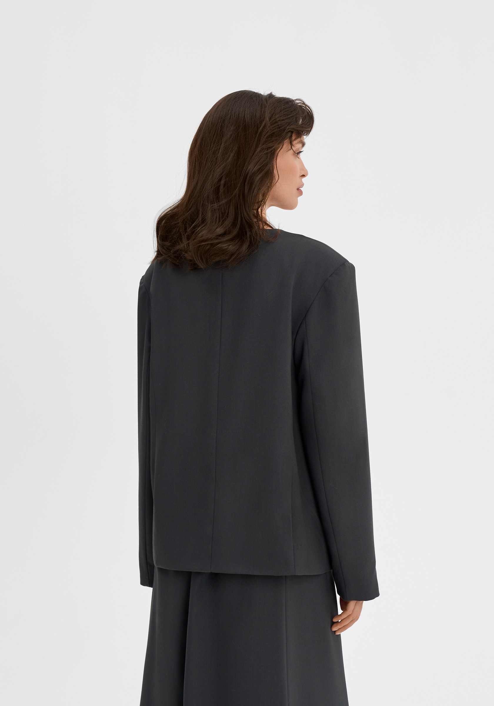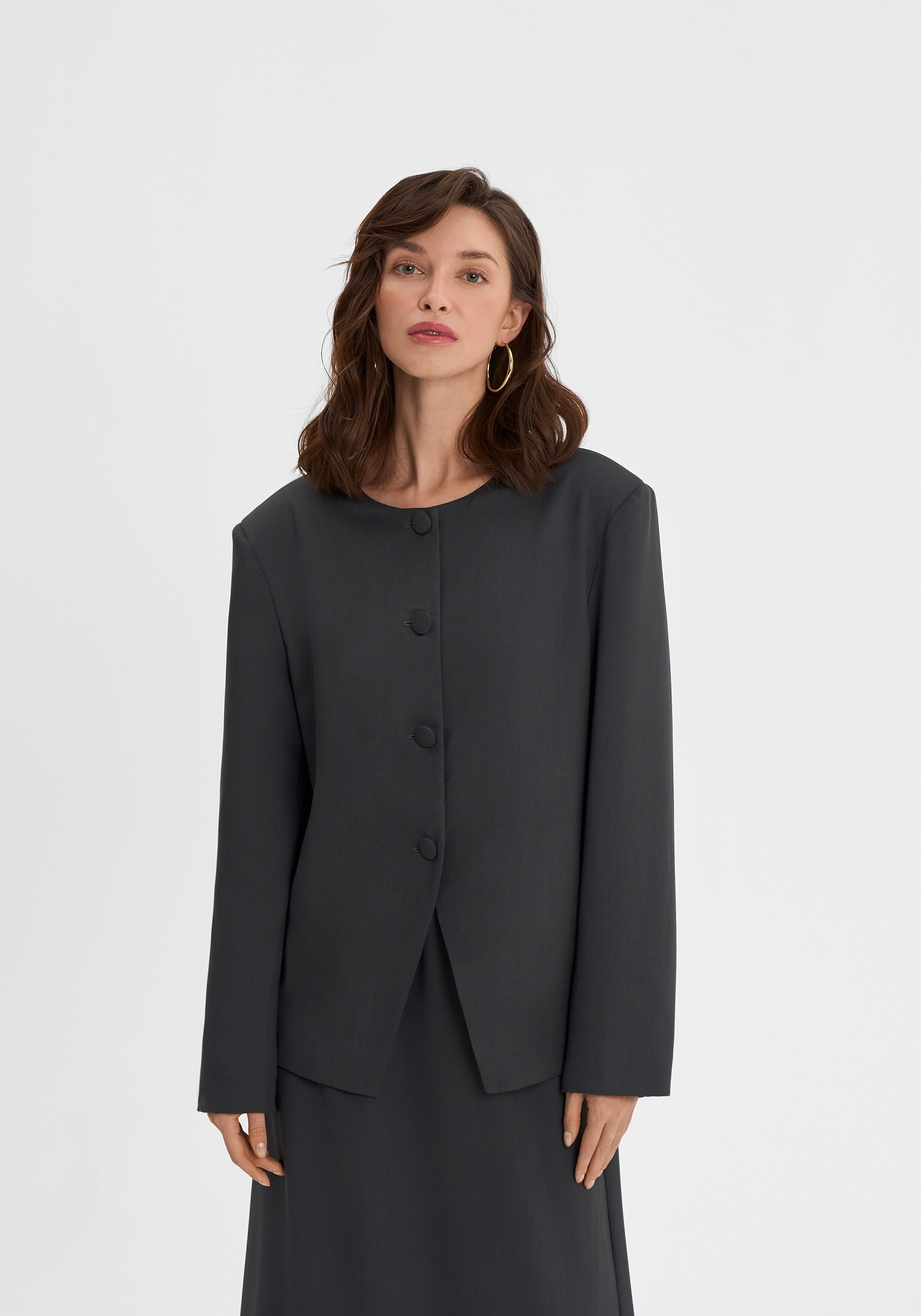Жакет из мягкой костюмной шерсти — лёгкий и пластичный, с естественным движением ткани и спокойным силуэтом. Полуприлегающая форма подчёркивает пропорции, оставаясь при этом свободной и ненавязчивой.Фактура тонкой шерсти приятна на ощупь и создаёт ощущение уюта, а кожаный ремешок добавляет современный штрих и позволяет менять настроение образа — от расслабленного до собранного.