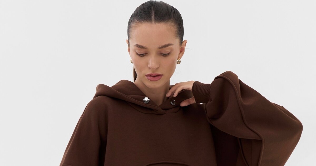 Худи объёмного силуэта выполнен из 100% хлопка с начёсом. Полностью экологичный и натуральный состав обеспечивает комфорт в носке. Кнопка на капюшоне из нержавеющей стали для фиксации. Линия плеча спущена, на рукавах манжет. Низ изделия имеет цельнокроеный манжет с потайным фиксатором на резинке. Параметры изделия