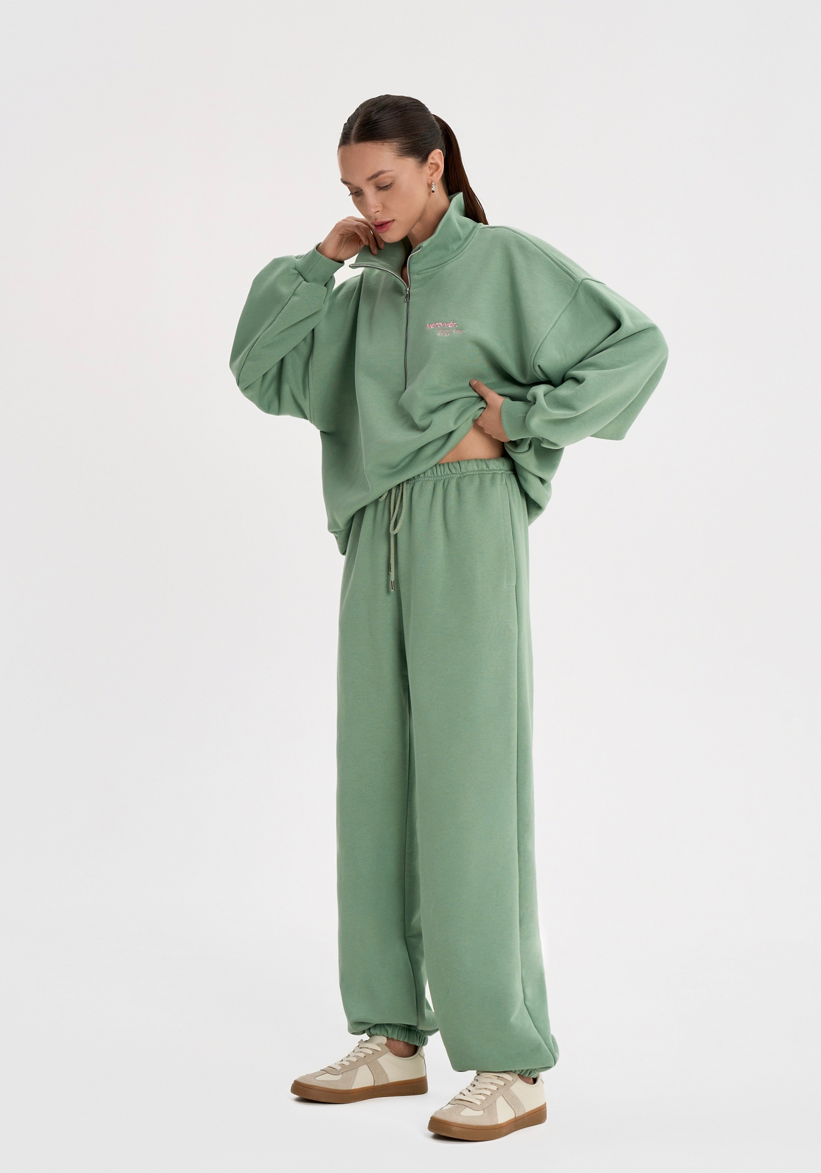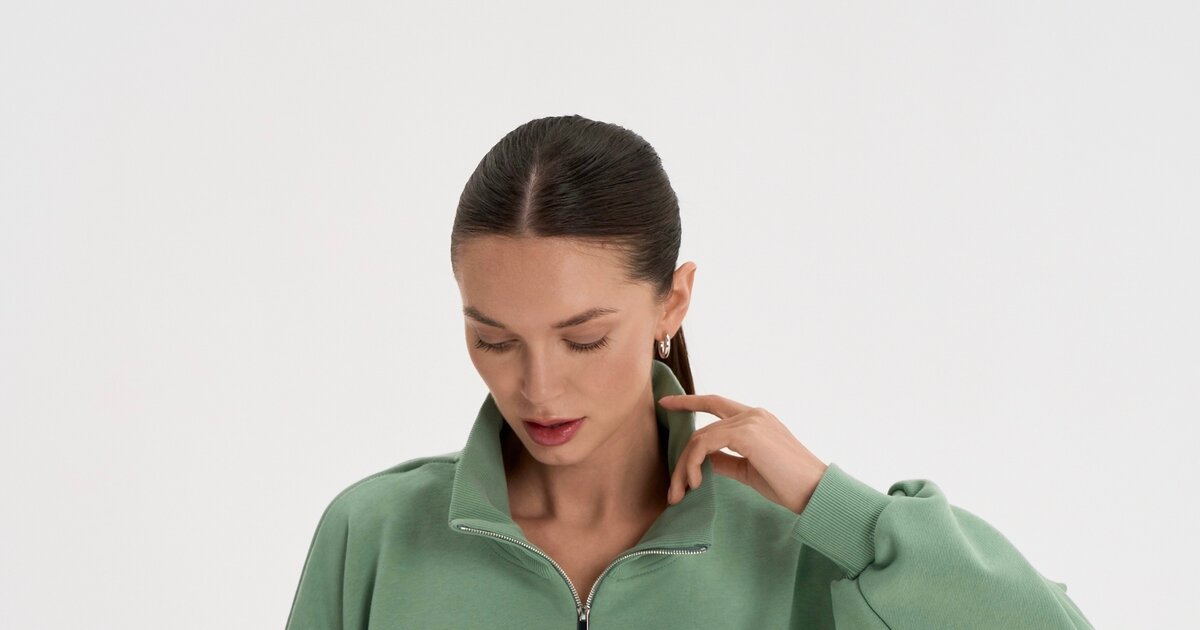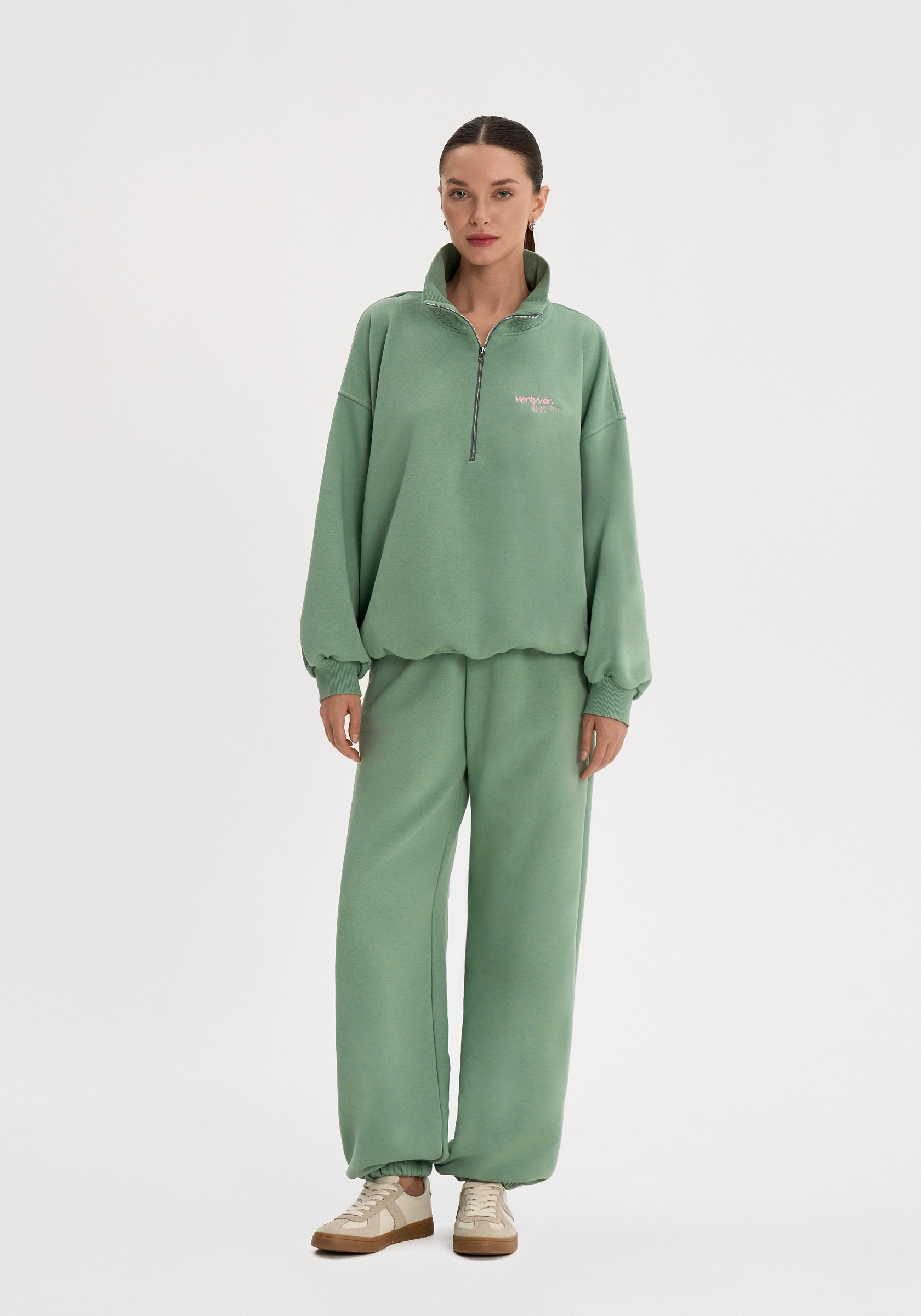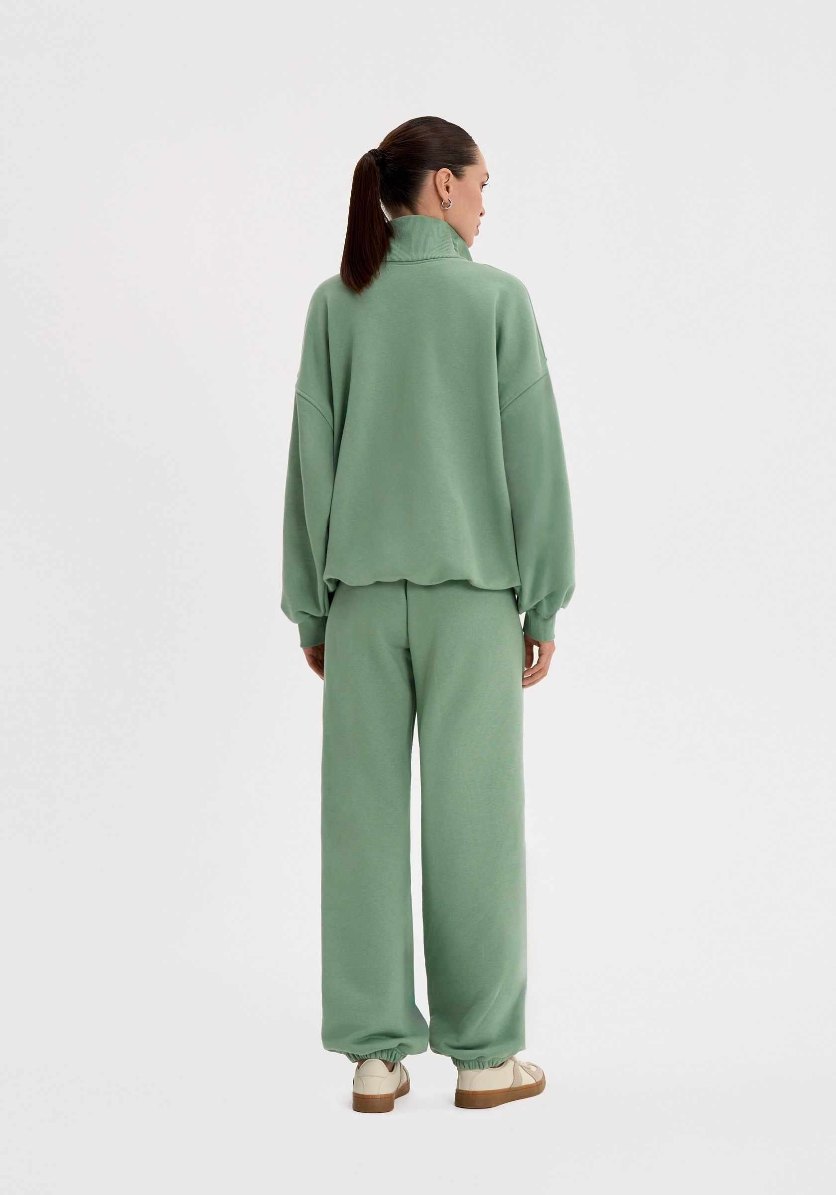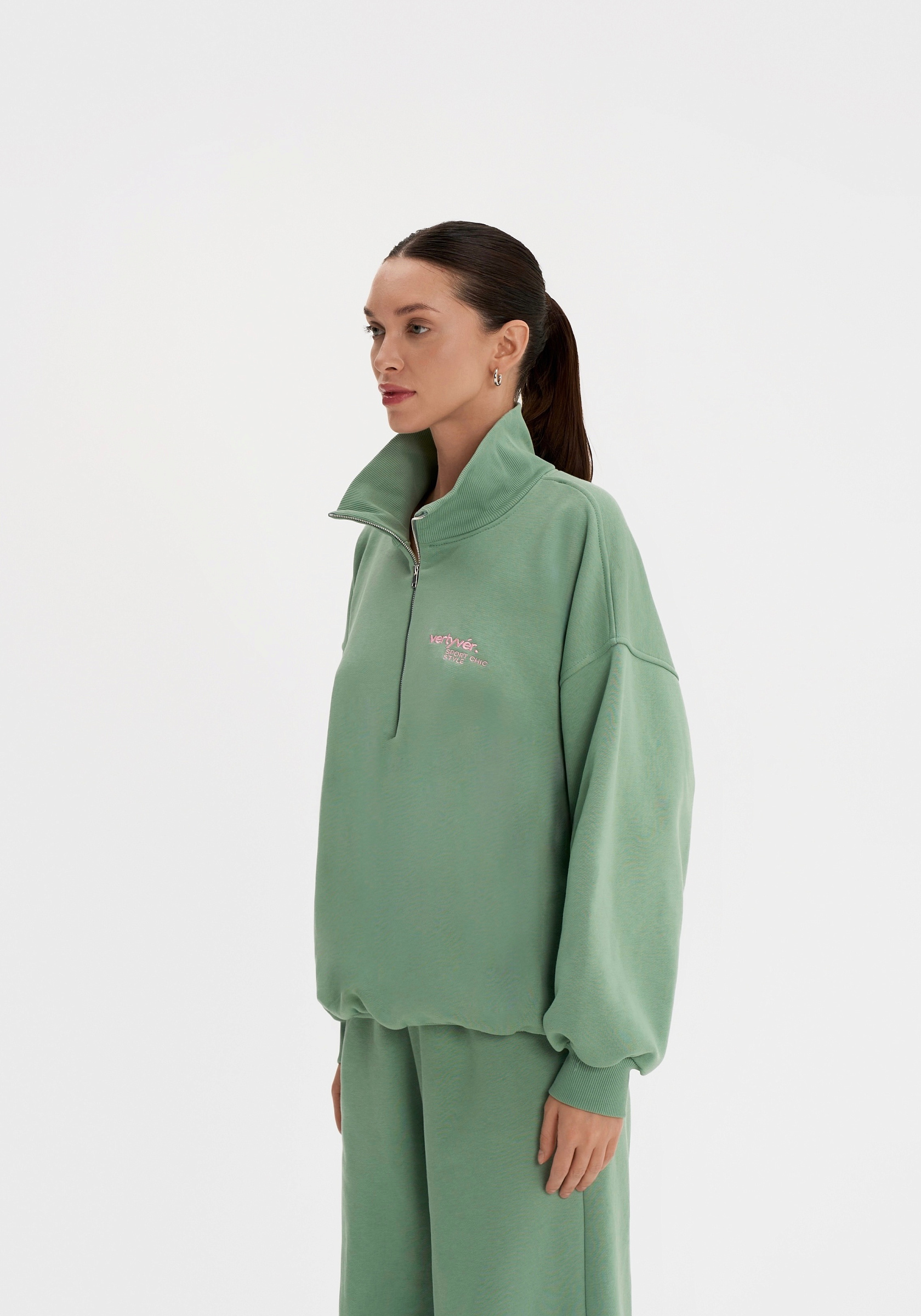 Свободный свитшот на молнии из хлопкового футера без начёса. Модель с воротником-стойкой и лаконичной вышивкой на груди сочетает комфорт и чистоту линий. Мягкая фактура и спущенная линия плеча создают расслабленный, но собранный силуэт.Параметры изделия