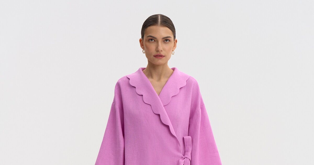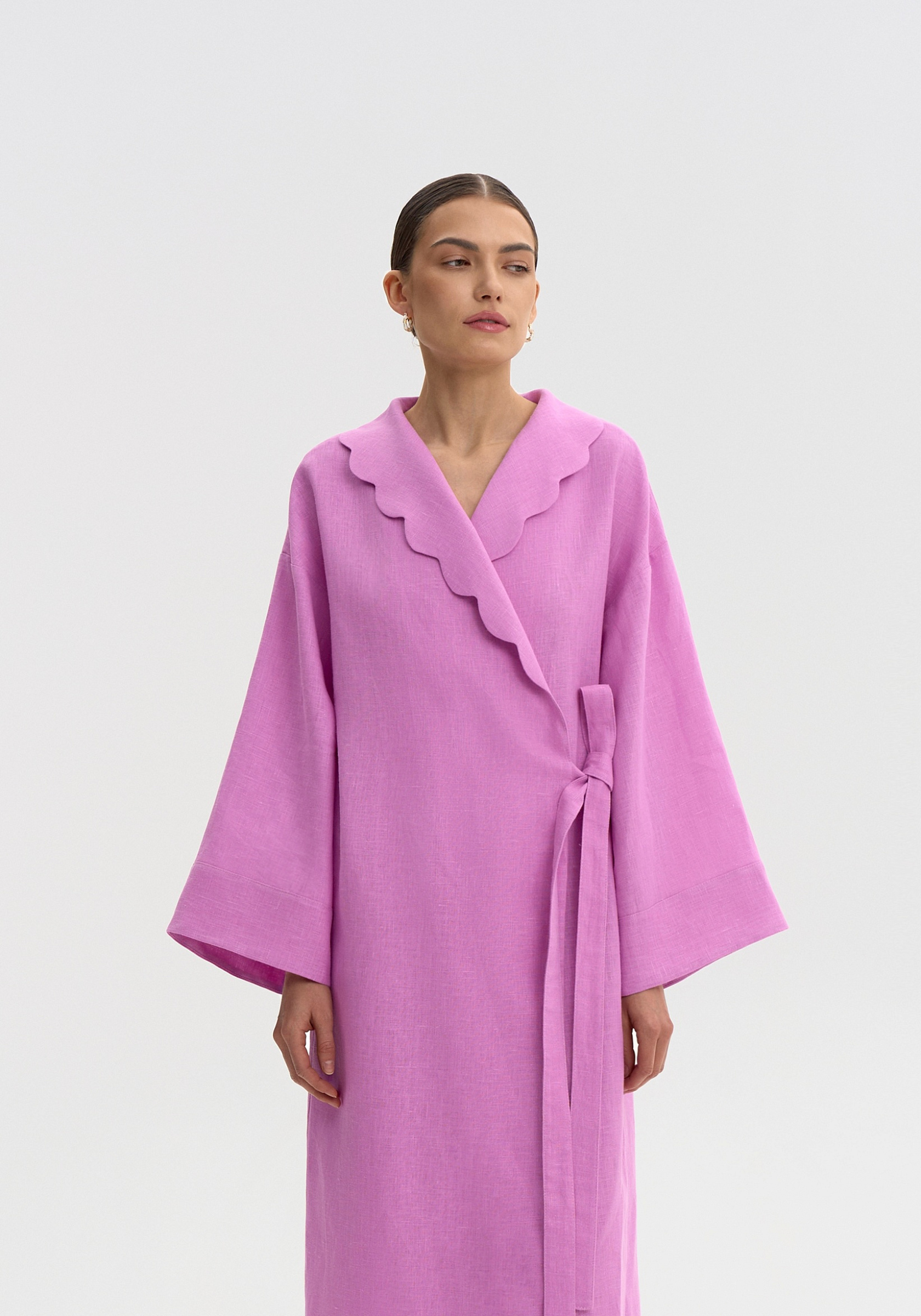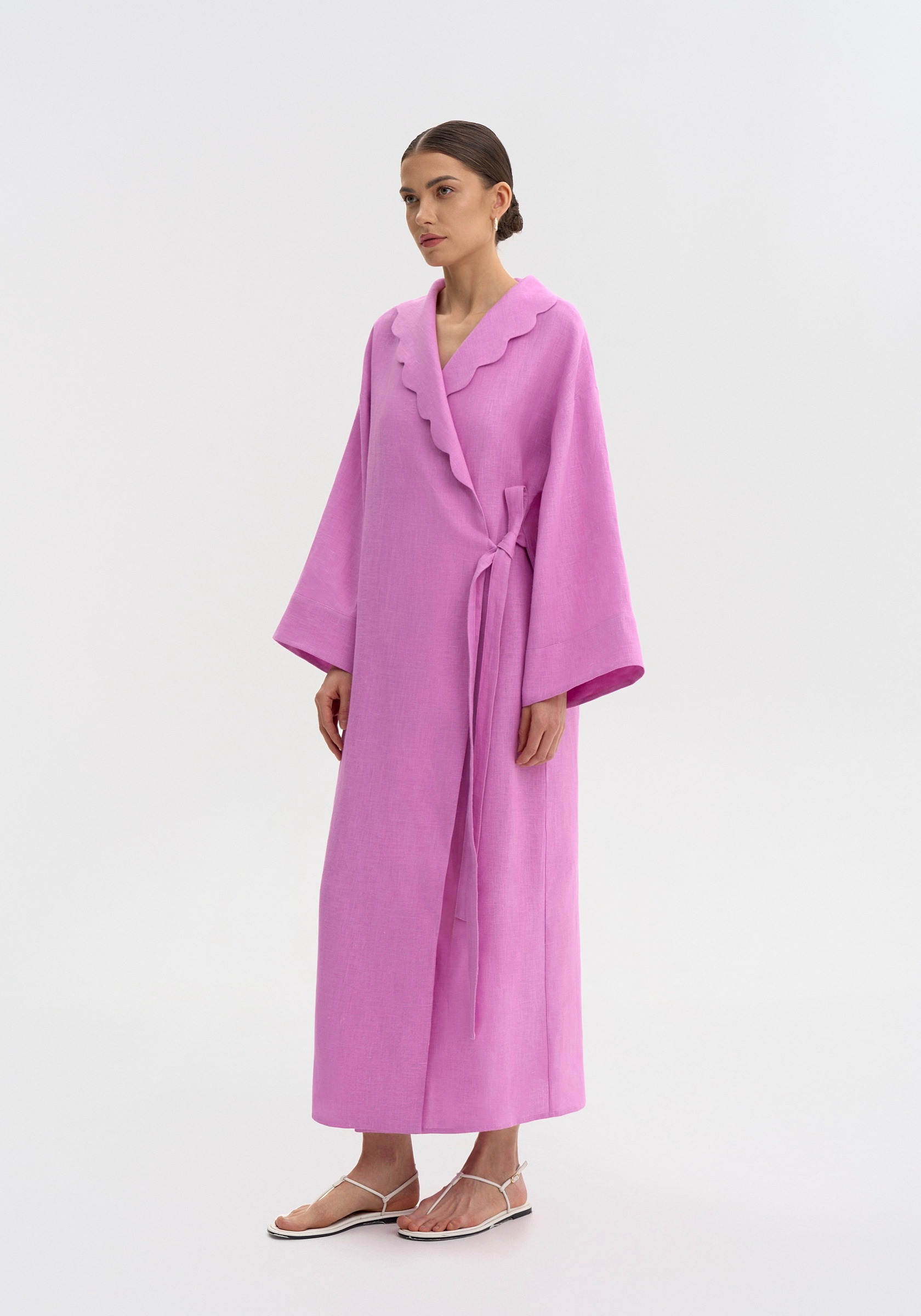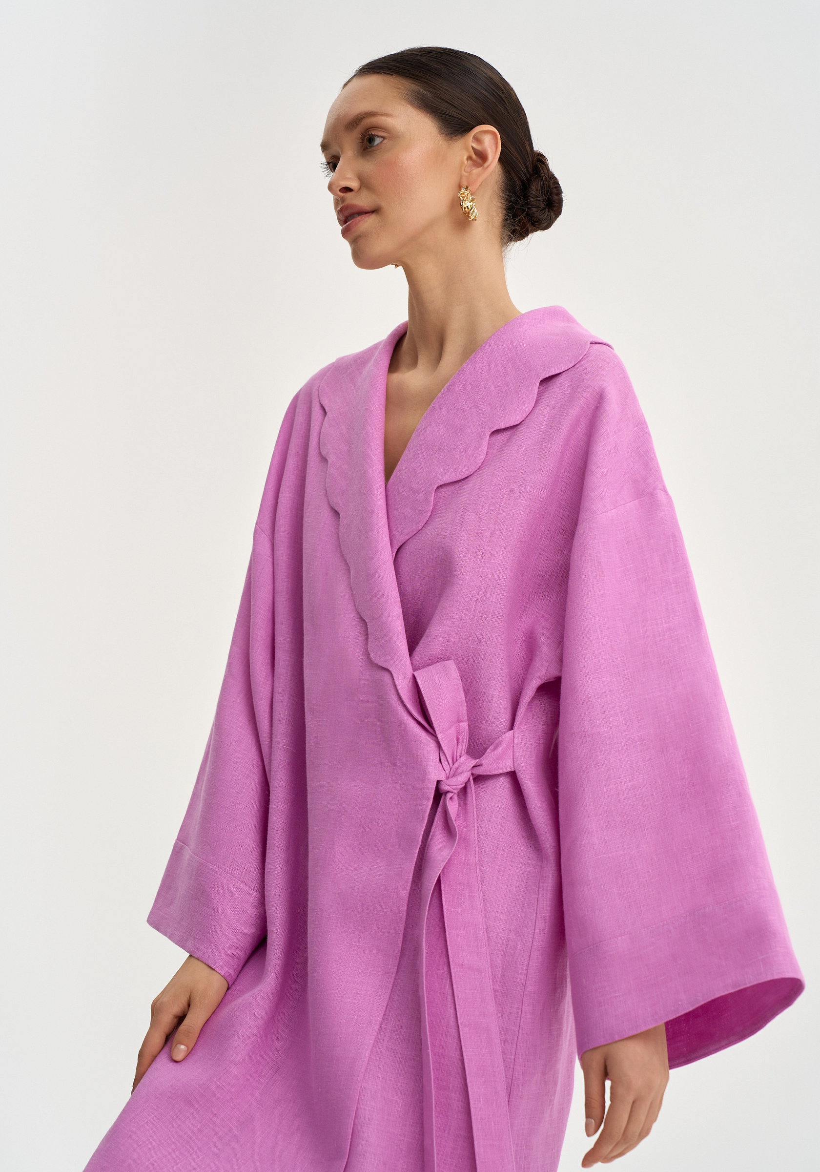 Мягкий умягчённый лён с естественной фактурой — дышащий и комфортный в тёплый сезон. Свободный крой со спущенной линией плеча и широкими рукавами создаёт лёгкий, пластичный силуэт