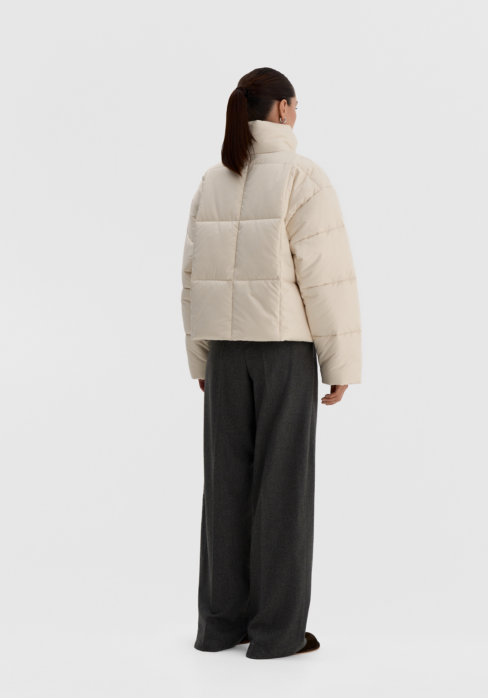 Зимняя куртка свободного силуэта — современная интерпретация базовой верхней одежды с акцентом на комфорт и продуманные детали. Воротник-стойка и регулируемый низ на резинке с фиксаторами защищают от ветра, а карманы и застёжка на молнии подчёркивают функциональность модели.Мягкая стёжка, выполненная на итальянской фабрике, создаёт объём и лёгкость, сохраняя элегантность линии. В качестве утеплителя используется инновационный Zero Down — материал нового поколения, который обеспечивает тепло без утяжеления. Он подстраивается под температуру тела, остаётся воздухопроницаемым и устойчивым к деформации.