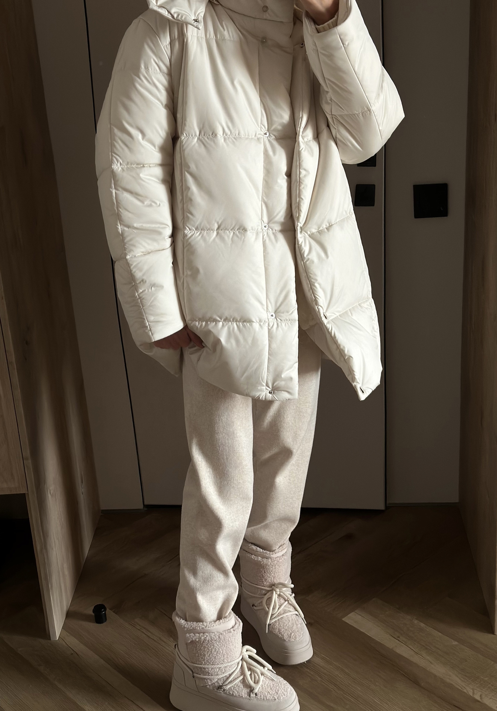 Мягкая стёжка, выполненная на итальянской фабрике, создаёт объём и лёгкость, сохраняя элегантность линии. В качестве утеплителя используется инновационный Zero Down — материал нового поколения, который обеспечивает тепло без утяжеления. Он подстраивается под температуру тела, остаётся воздухопроницаемым и устойчивым к деформации.
