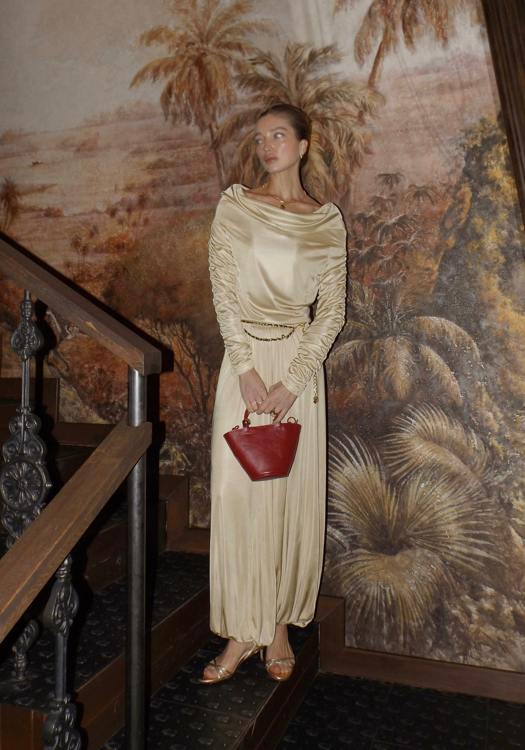 Алладины из 100% вискозы, которые мягко струятся и создают выразительный, округлый силуэт за счёт присобранного низа.Свободная посадка и эластичная резинка по поясу делают модель комфортной и пластичной — она подстраивается под движения и мягко драпируется без лишнего объёма.