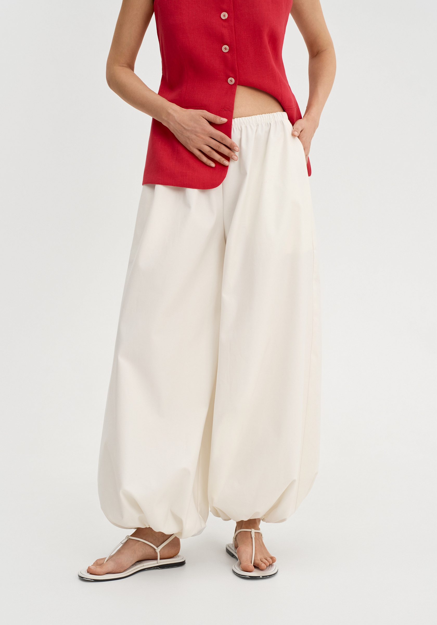 Брюки свободного силуэта из итальянского хлопка.