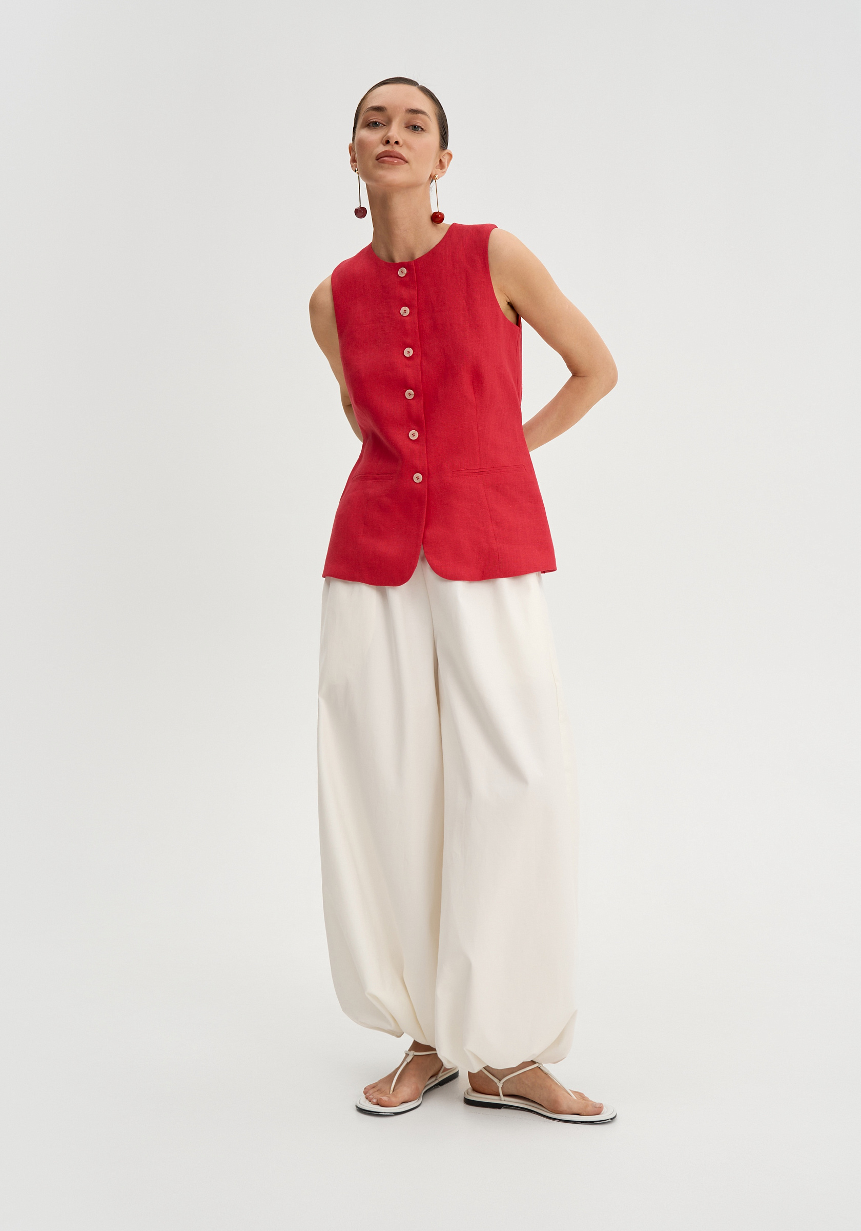 Брюки легко сочетаются с топами, рубашками и лёгкими жакетами, формируя расслабленные и продуманные образы.