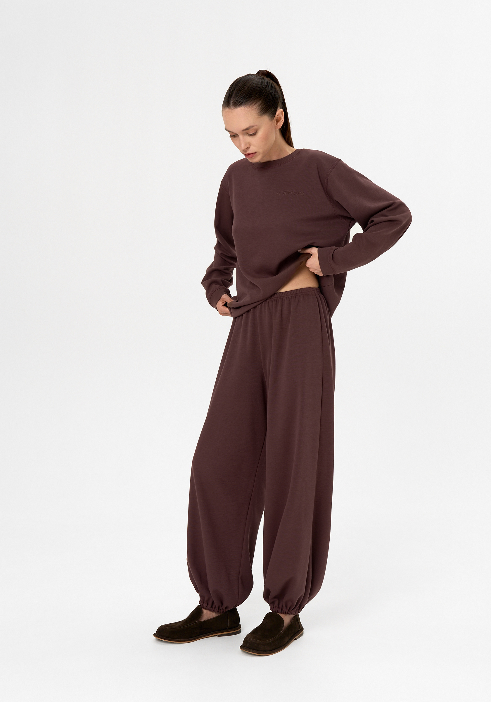 Алладины из итальянского трикотажного хлопка со свободной посадкой и эластичными резинками по поясу и низу. Комфортные, пластичные и идеально сбалансированные по форме — для расслабленных и продуманных образов. Параметры изделия