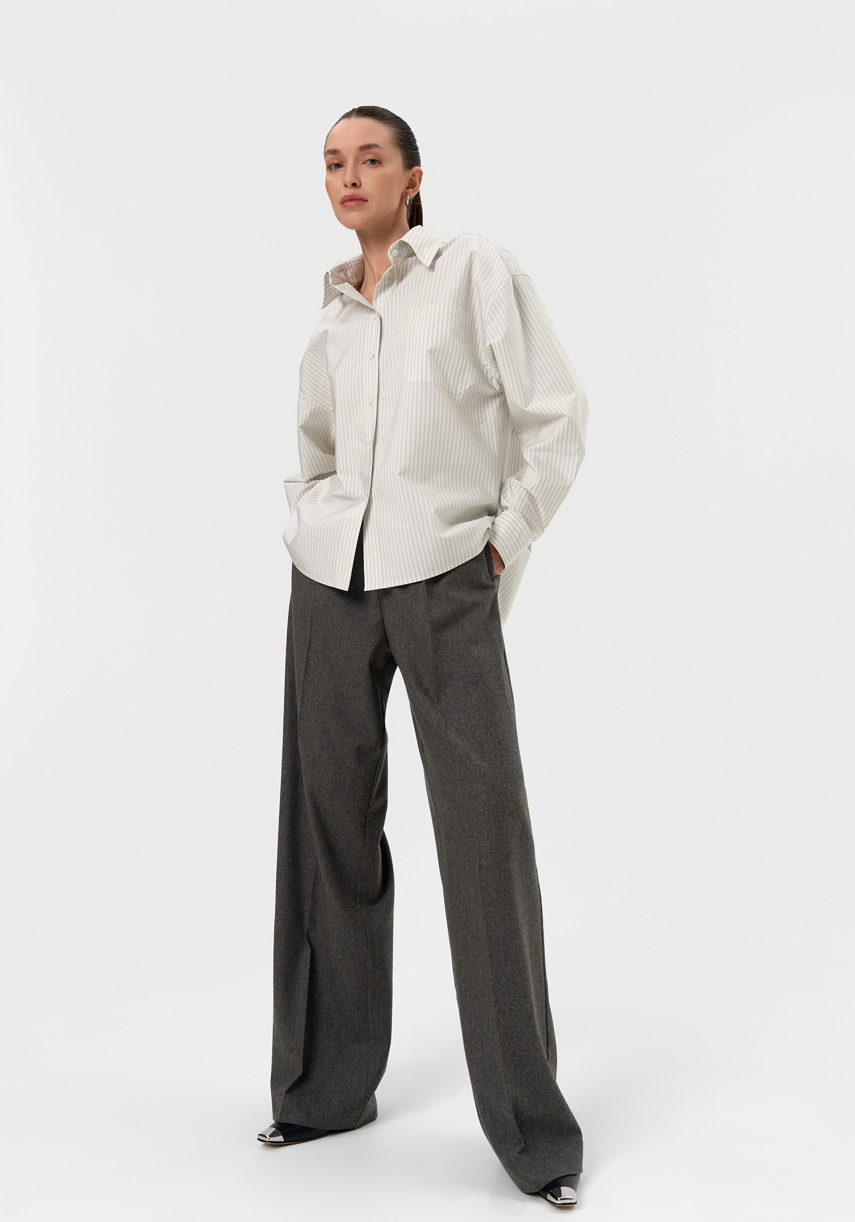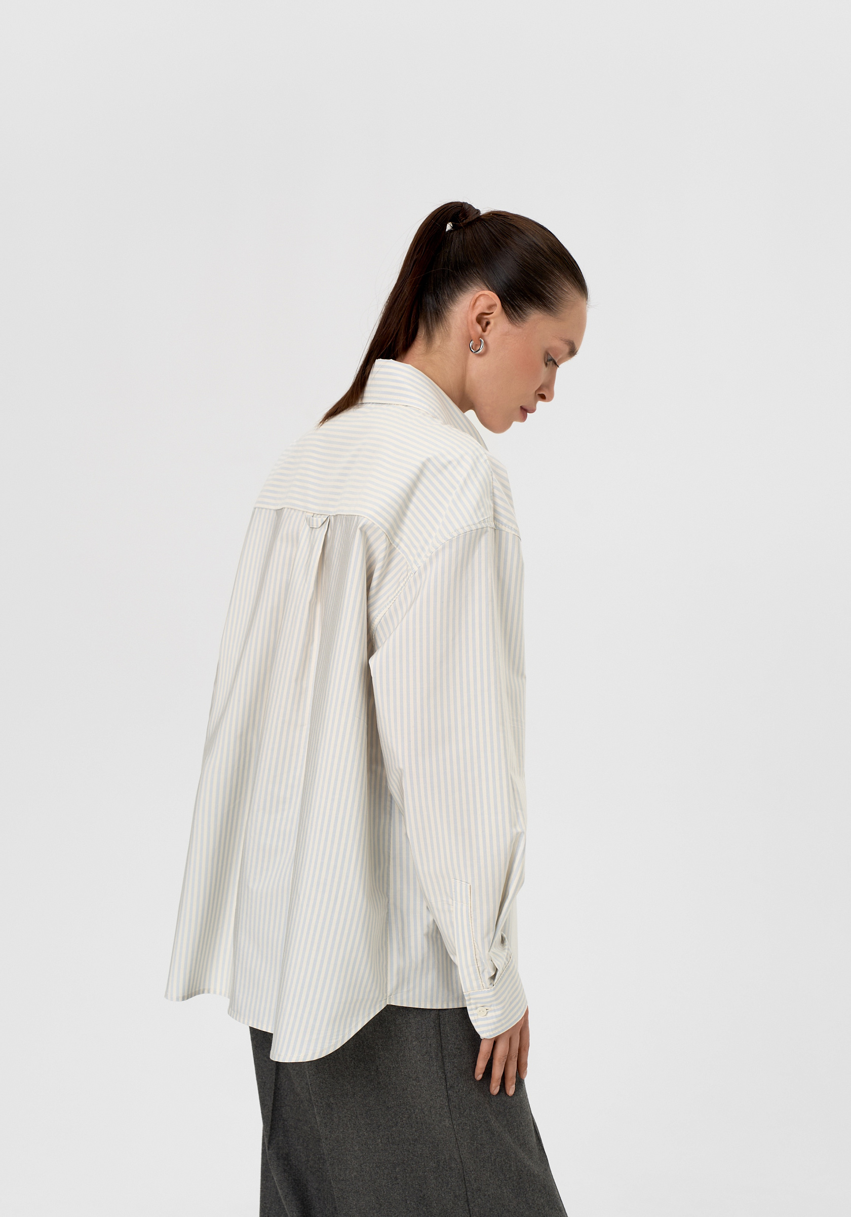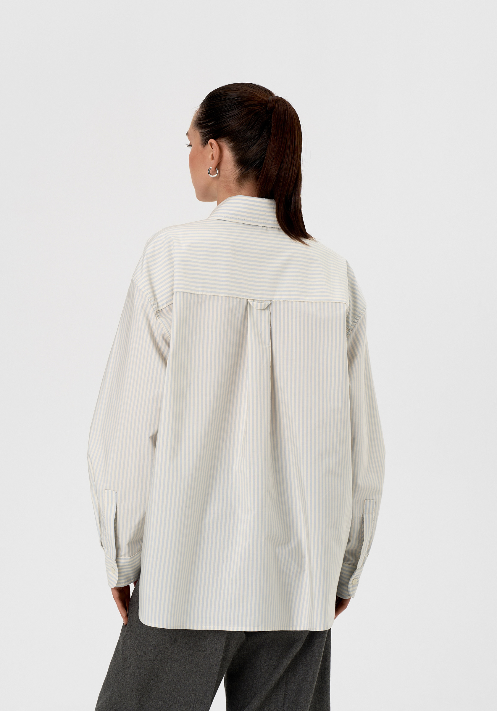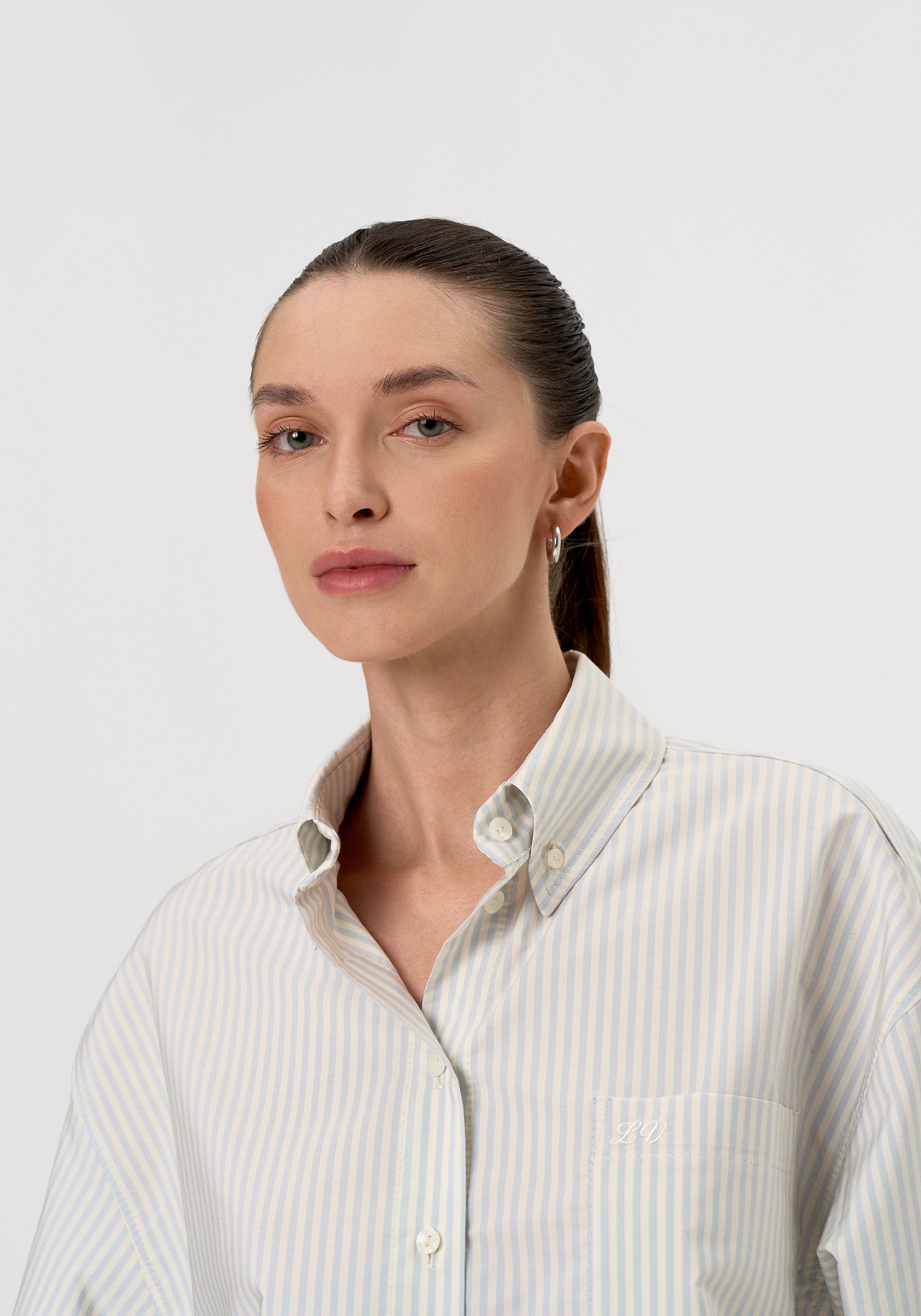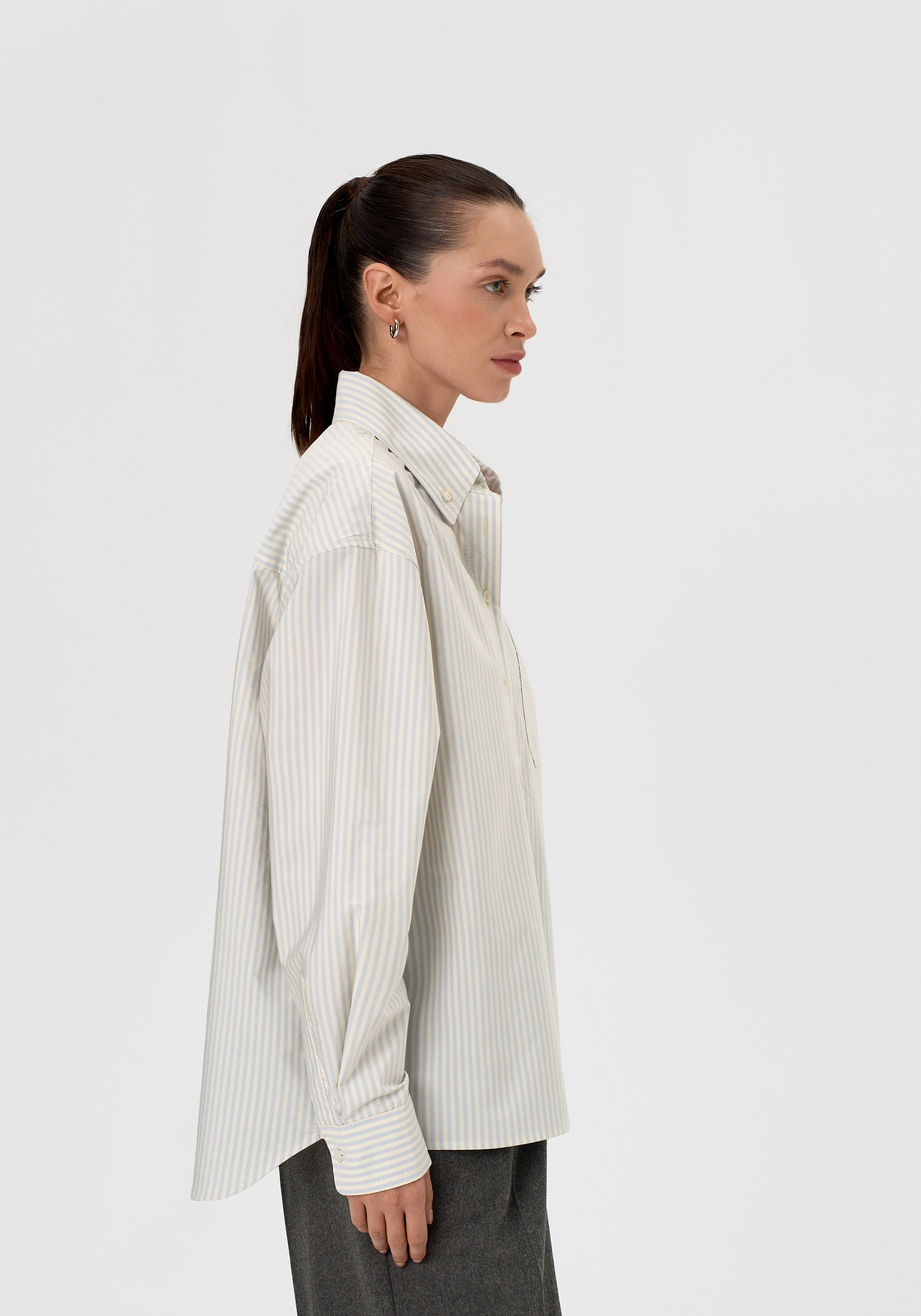 Оверсайз рубашка из итальянского хлопка — лаконичная классика в современном прочтении. Свободный силуэт и мягкая линия плеча создают расслабленный, но собранный образ. Классический воротник-стойка и аккуратная полоска подчёркивают утончённость формы, а накладной карман добавляет лёгкий акцент.Рубашка выполнена из итальянской хлопковой ткани, приятной к телу и хорошо держащей форму. Универсальная база для повседневных и деловых сочетаний.