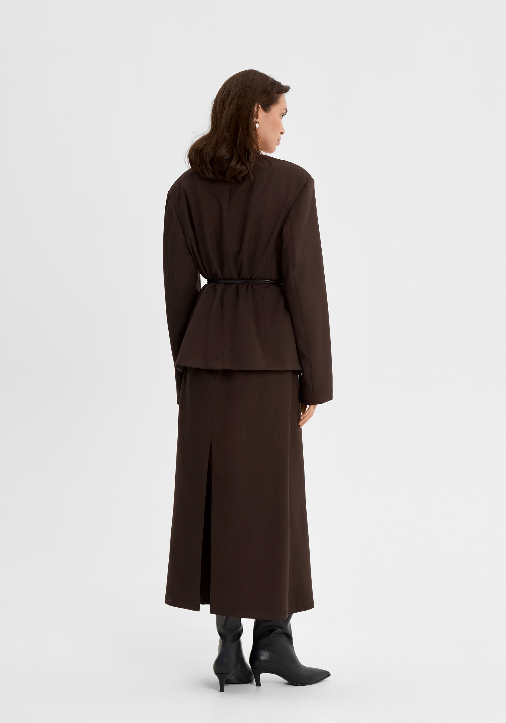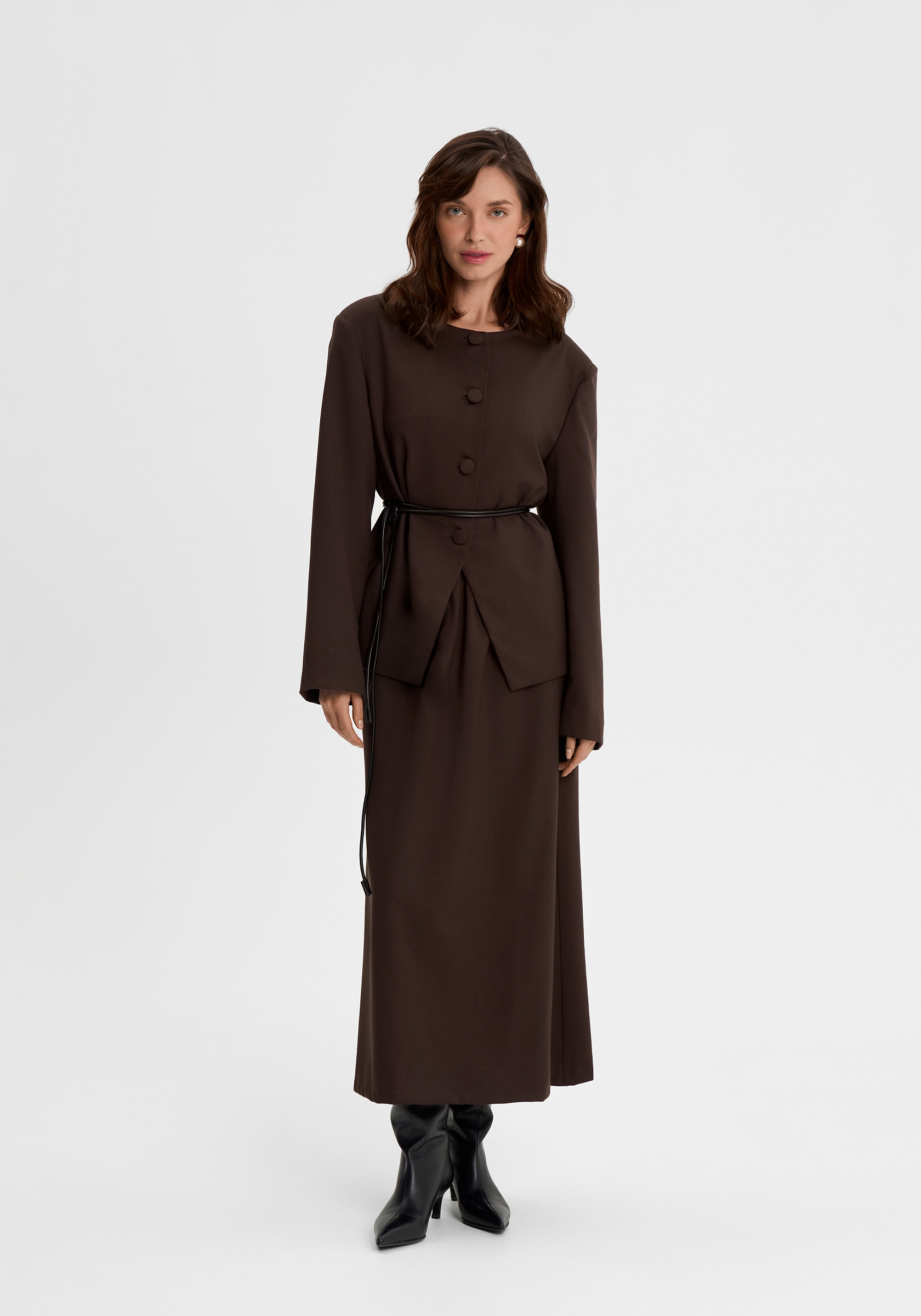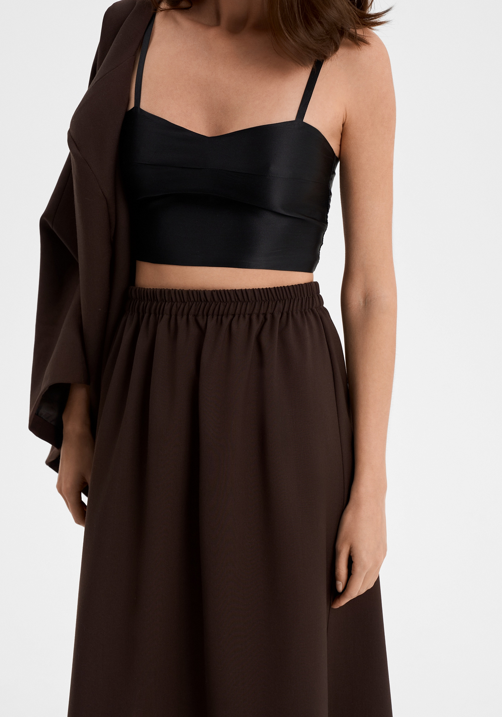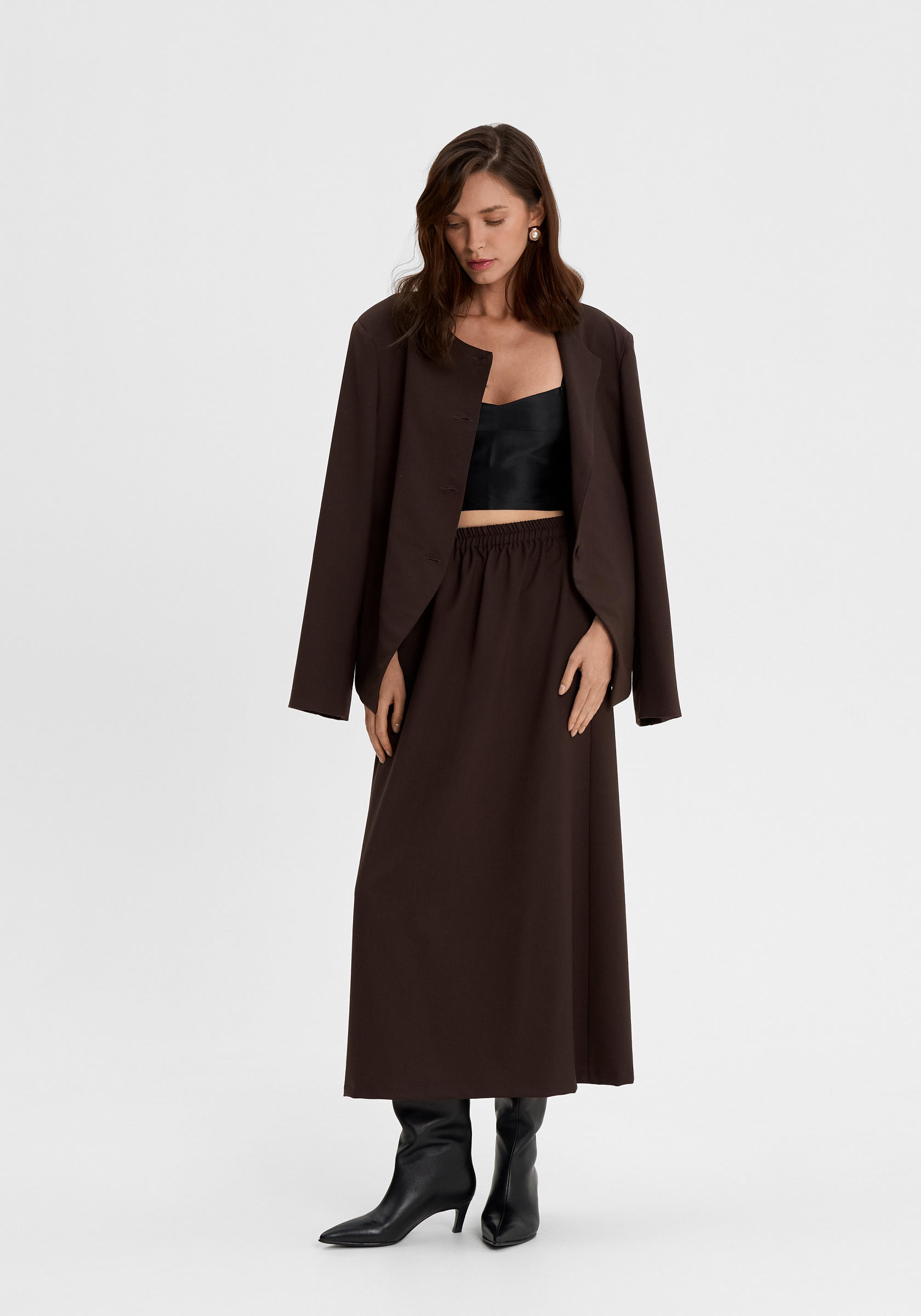 Юбка из 100% шерсти длины миди. Свободный силуэт с мягкой посадкой на резинке создаёт ощущение лёгкости и комфорта, сохраняя при этом чёткую архитектуру линии.Тонкая шерсть красиво драпируется и движется вместе с телом, добавляя образу естественности и утончённости. Универсальная модель, которая одинаково гармонично сочетается с жакетами, рубашками и плотным трикотажем.