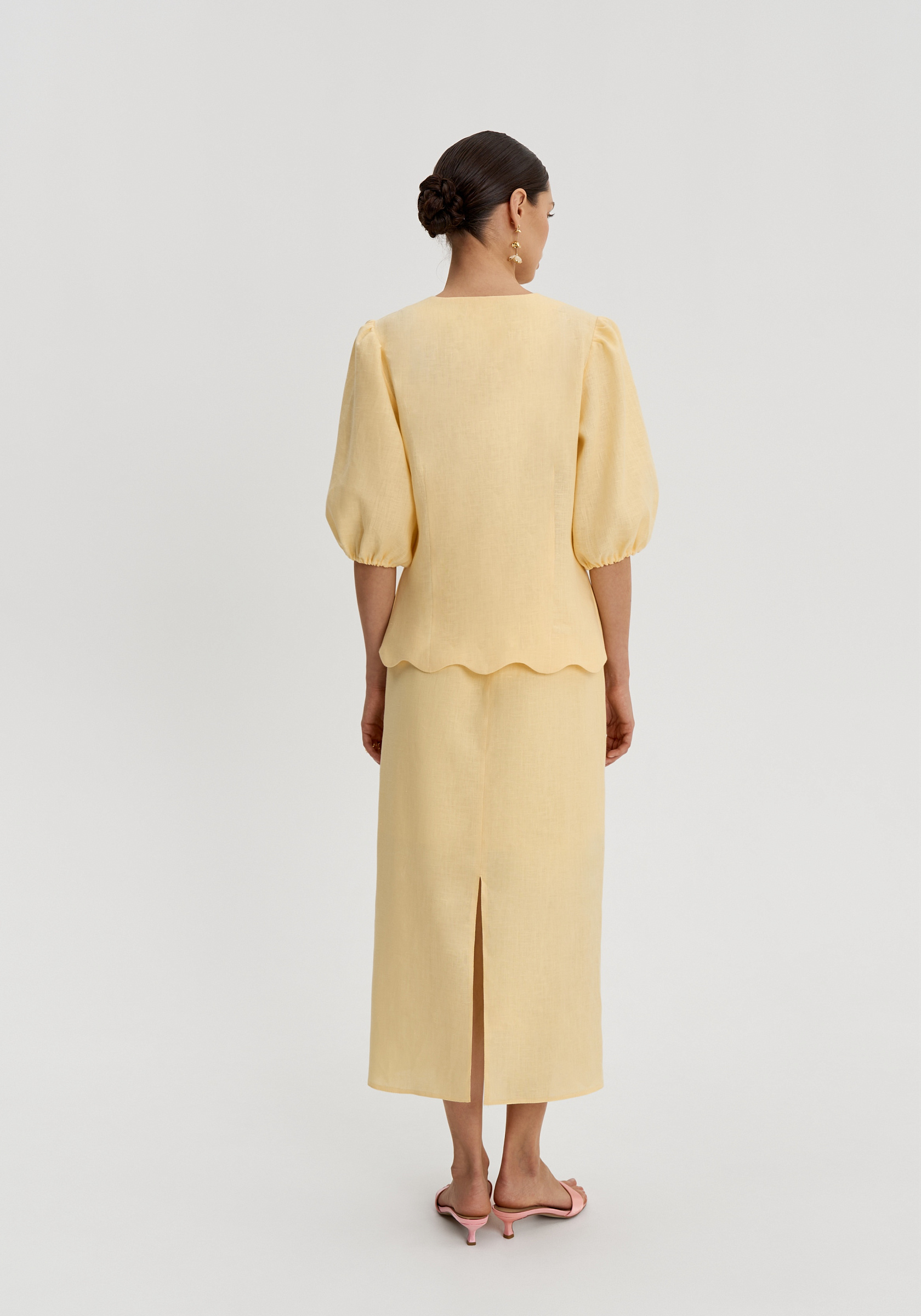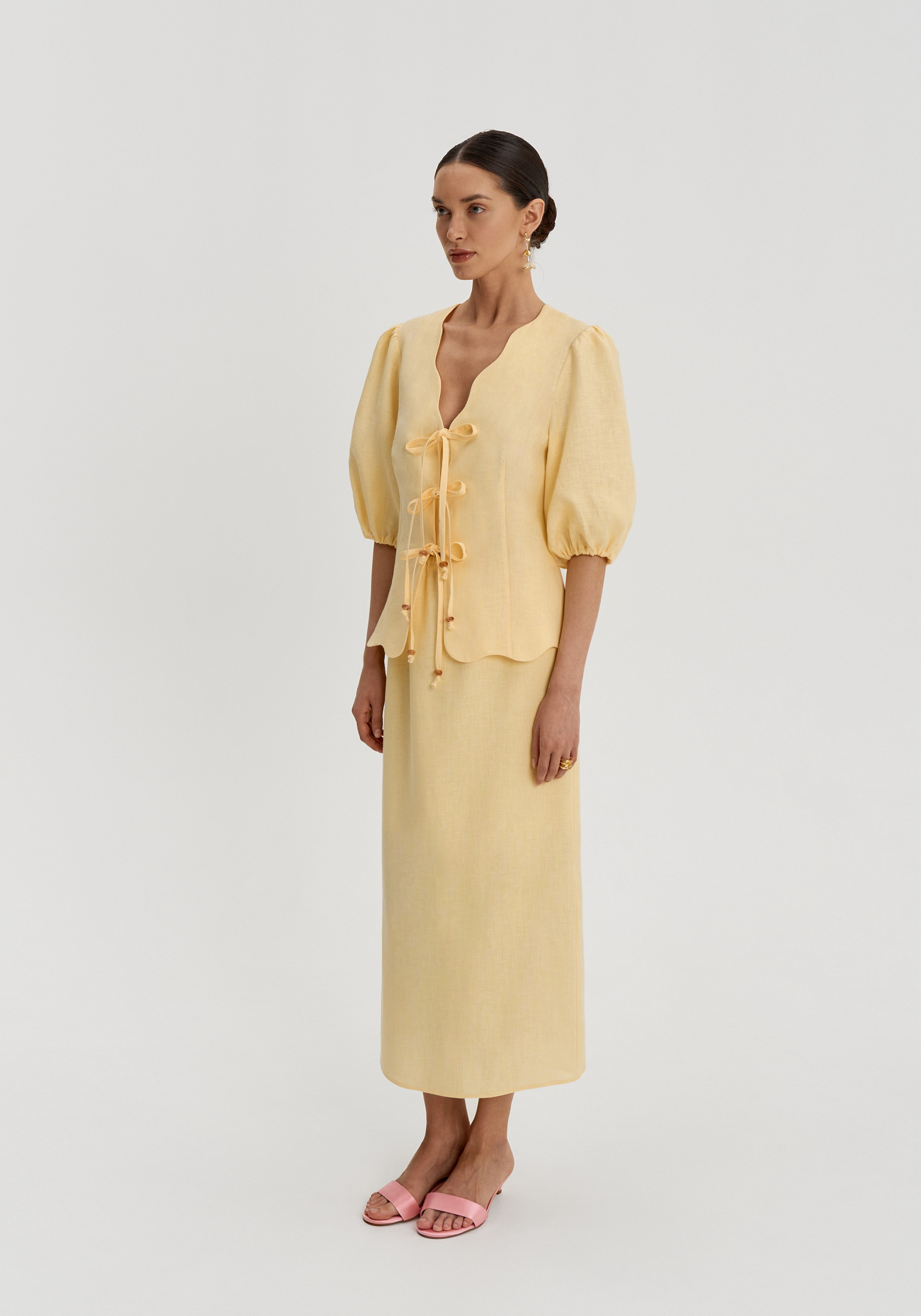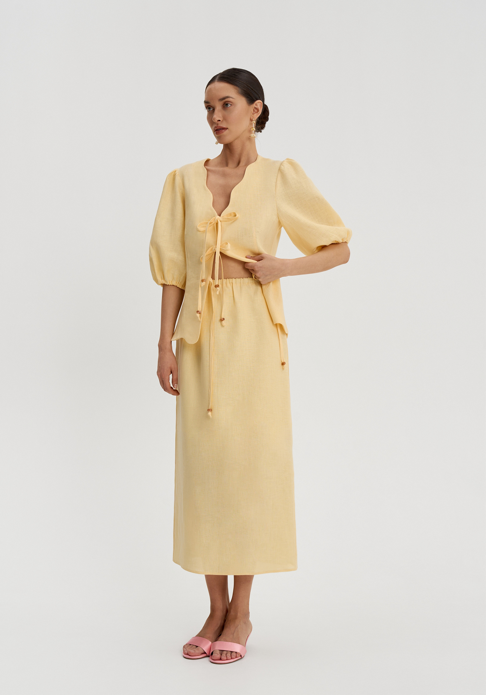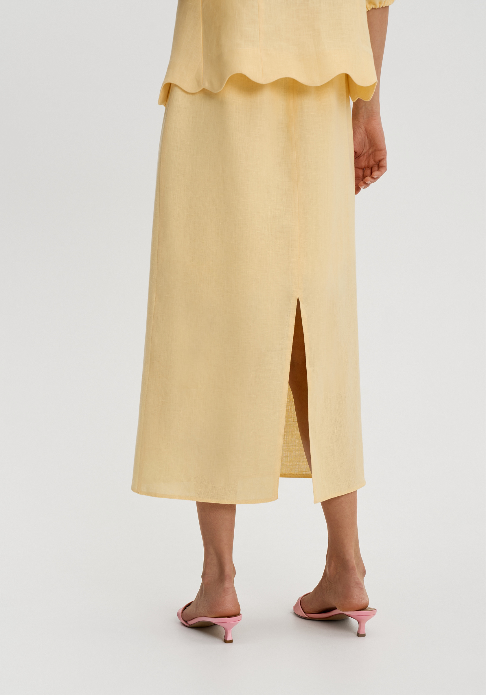 Юбка из 100% льна — легкого, дышащего материала с природной фактурой, особенно комфортного в теплый сезон. Прямой силуэт делает модель лаконичной и вытягивает образ, сохраняя ощущение легкости.