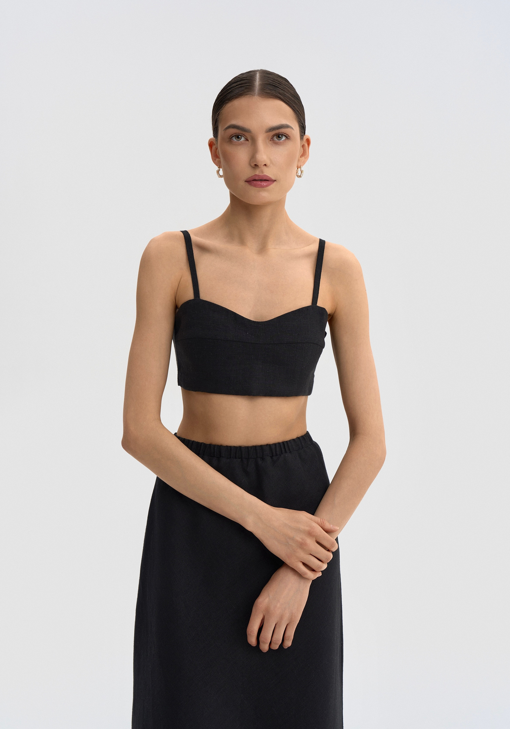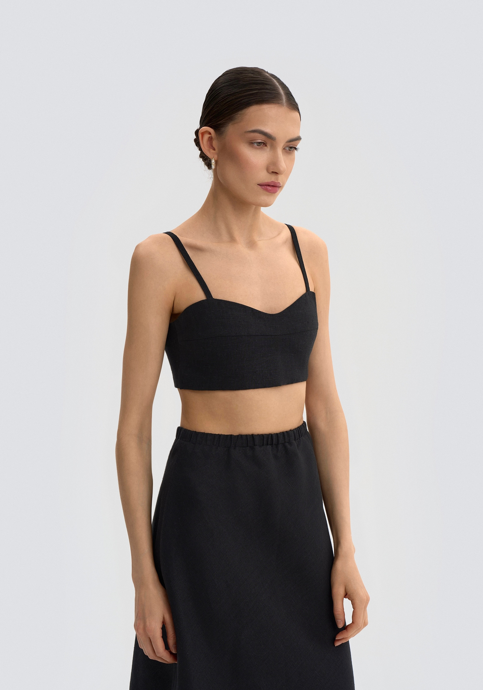 Топ бандо из натурального 100% льна. Корсетный топ-бандо. Вставка по спинке резинка. Регулируемые лямки. Топ отшивается индивидуально. Возврату не подлежит(нижнее белье). При оформлении заказа необходимо указать ваш обхват груди и обхват под грудью в комментарии. Измеряем без белья.
